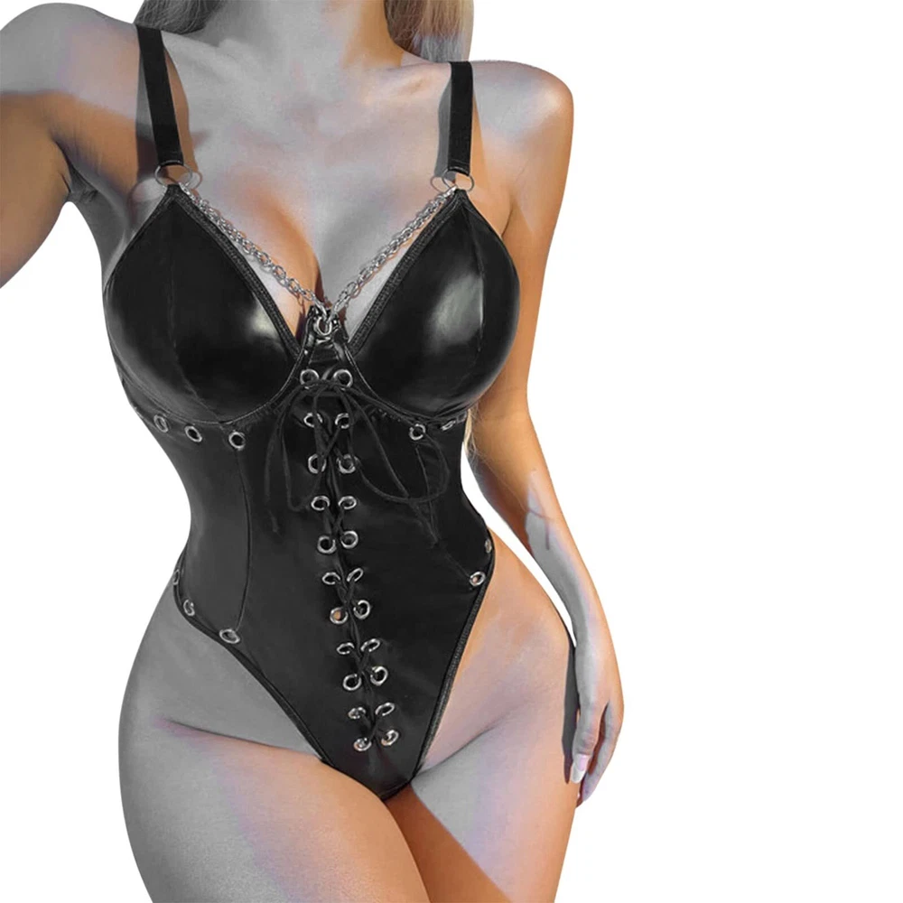 Sexy Wet Look Patent Leather Bodysuit Lingerie Clubwear Cosplay Leotard