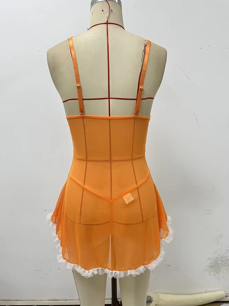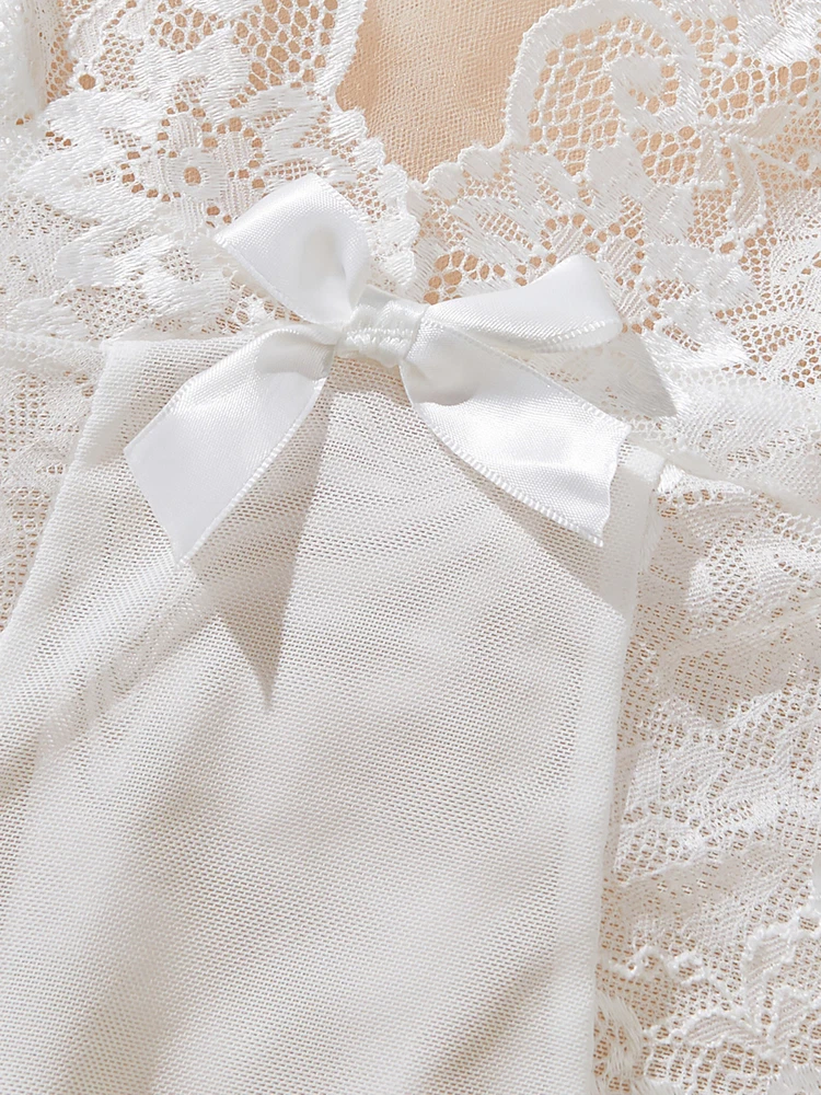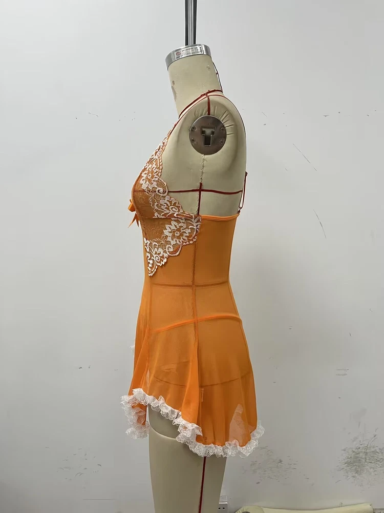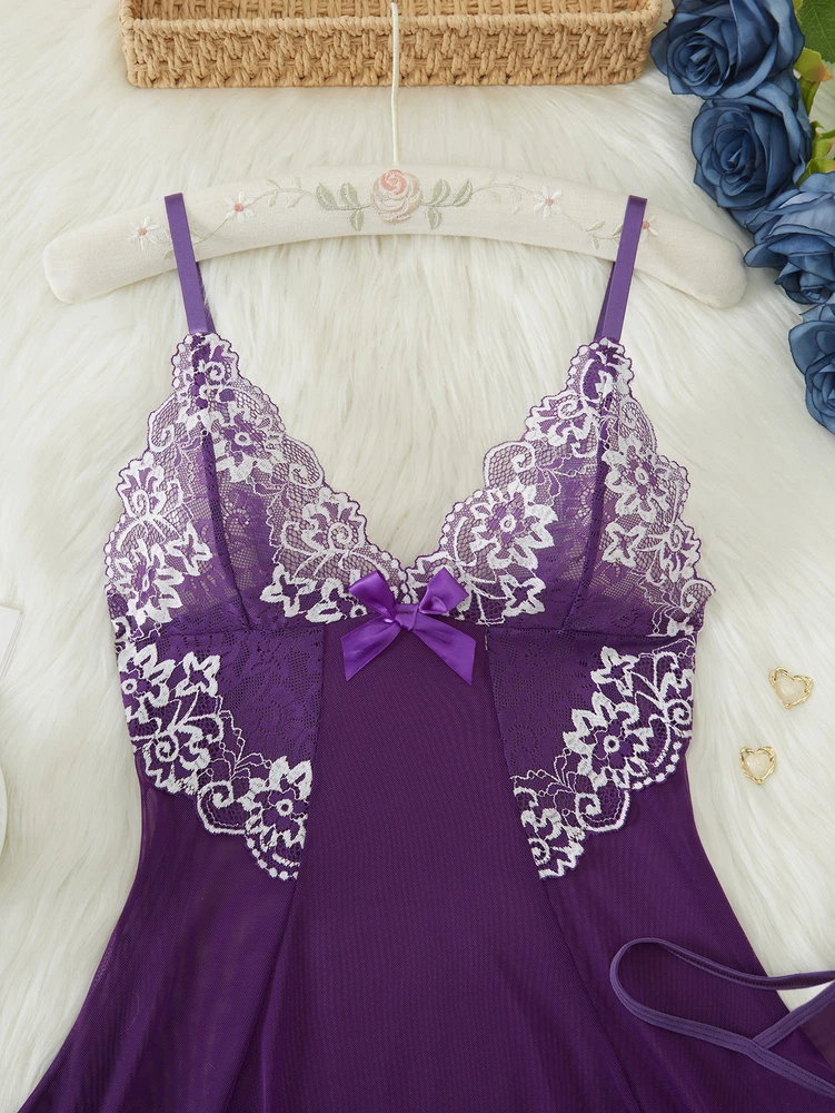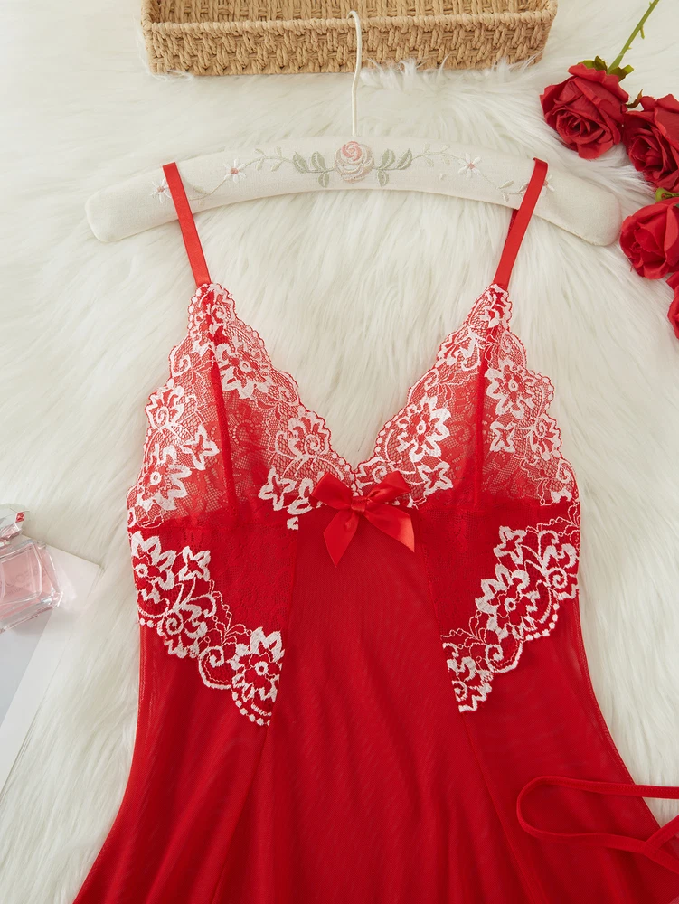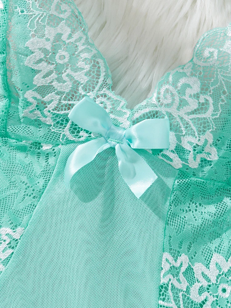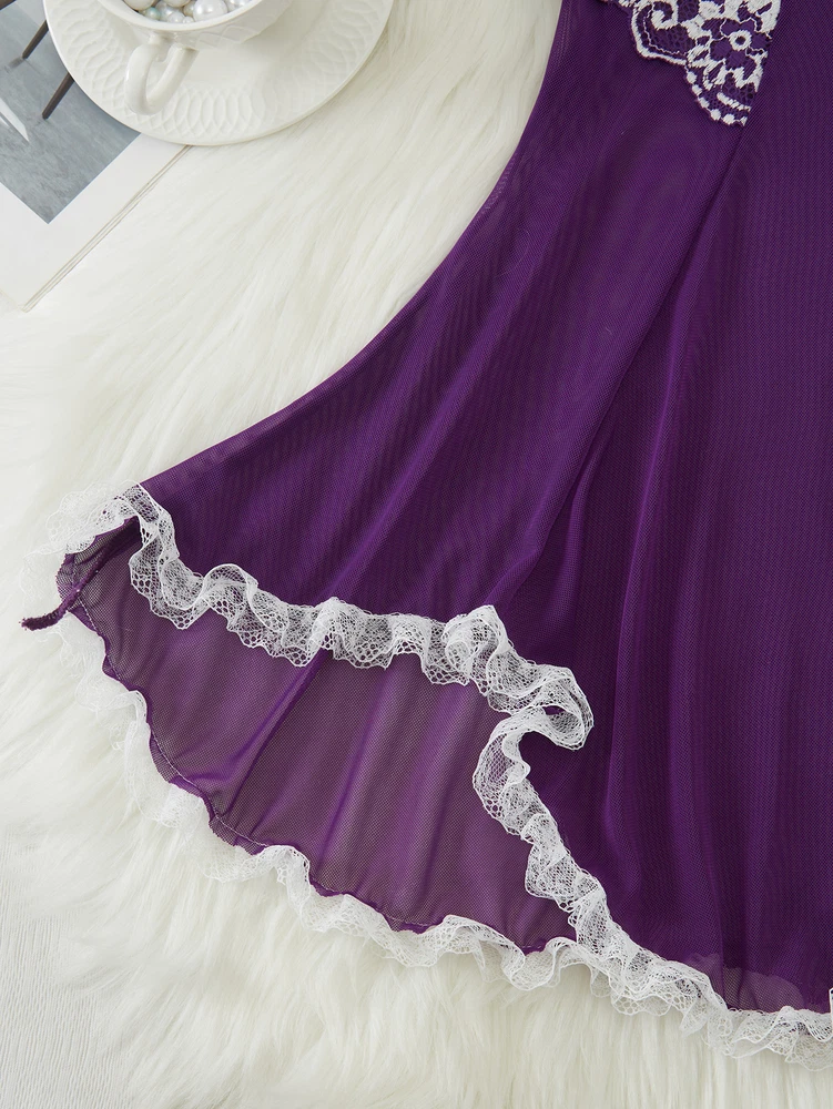 Sexy Womens Lingerie V-neck Babydoll Floral Sleepwear Lace Sheer Slip Dress Set