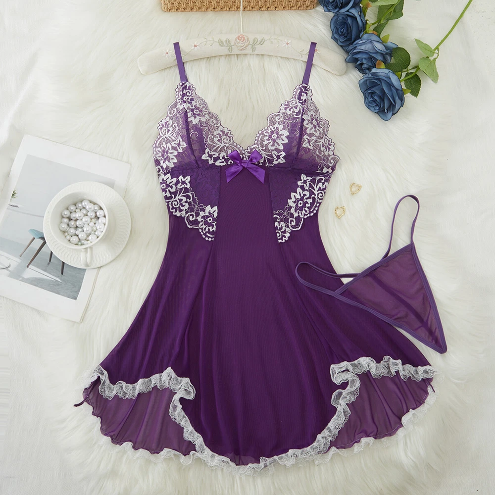 Feature: Brand new and high quality Material: Lace and Polyester . lace lingerie for women babydoll, lace chemise lingerie, maternity lingerie, nighties for women sexy, women sleepwear, women nightwear, langery for women sexy, negligee lingerie Style: women deep v neck lingerie lace mesh see through babydoll set with G-string featuring floral lace cups, lace trim, Occasion: Sleepwear, Nightwear. Perfect for wedding night, honeymoon, lingerie party, anniversaries, valentine's day, bedroom, sleeping, bridal shower gifts, or every hot night, it will make you more attractive and charming Size:S/M/L/XL/2XL Color:AS SHOW Package Included: 1*Sexy Lingerie Set