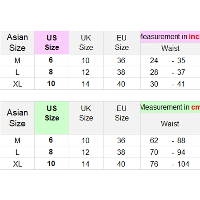 Welcome to Our Store! We Are Offering High Quality Products with Reasonable Wholesale Price. All Products Are Supply from Factory Directly. Excellent Service and Fast Shipping. Description Item Colour : White, Red, Black, Pink Item Material: Silk ITEM SIZE: M, L, XL Size M, Waist 62-88cm Size L, Waist 70-94cm Size XL, Waist 76-104cm Store:China_cheong Packing :: Opp Bag Payment Payment is needed to receive within 7 days after deal.if not we will close the transaction. Shipping Shipping Method Shipping Destination Shippint Time Economy(with Tracking) USA 10-20 working days Economy(without Tracking) Canada, United Kingdom, Austrilia, France, Germany, Spain, Ireland, Italy, Others 15-30 working days Standard (EMS Express) USA, Canada, United Kingdom, Austrilia, France, Germany, Spain, Ireland, Italy, Others 5-7 working days Express (DHL Express) USA, Canada, United Kingdom, Austrilia, France, Germany, Spain, Ireland, Italy, Others 3-4 working days Customs Declaration: Import duties, taxes and charges are not included in the item price or shipping charges. These charges are the buyer’s responsibility. Please check with your country’s customs office to determine what these additional costs will be prior to biddingying. DHL can not reach to few remote areas in your country,if you choose Express and living remote areas. You should pay the additional shipping charge. If your area belongs to remote areas, the parcel can't reach, or you need to pay more freight, our customer service will contact you. If you need to add the tracking number, be sure to contact customer service before making orders especial for the people comes from the country of Eastern Europe, the Middle East and South American. It needs to pay the extra shipping cost! Order can not be shipping to any P.O boxes. Order can only be shipped to physical addresses.