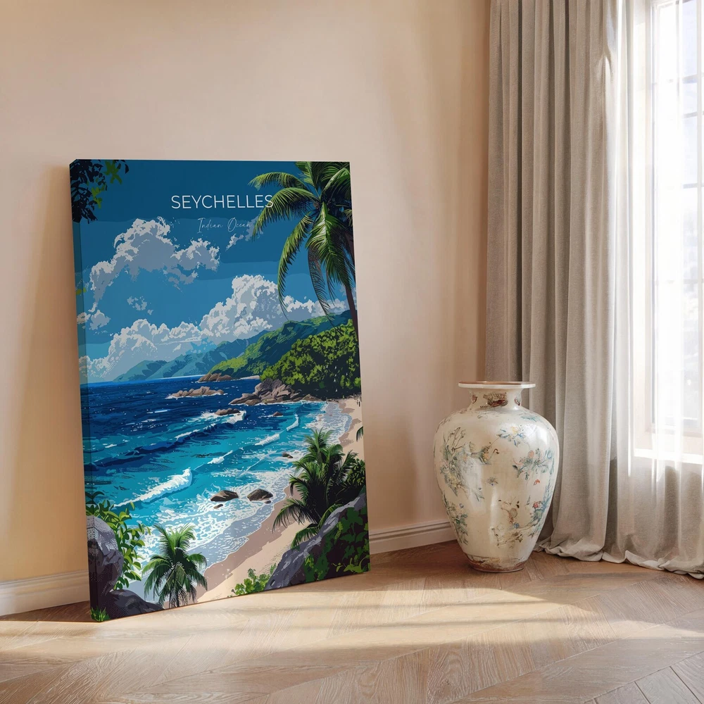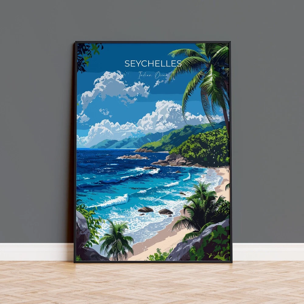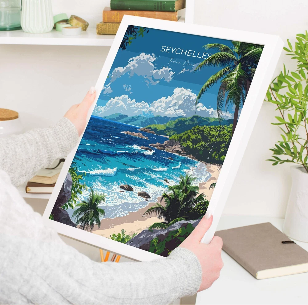 Seychelles Travel Poster Wall Art Travel Print Of Seychelles Indian Ocean Seychelles Islands Art Lovers Gift Material: Premium luster photo paper Print type: Inkjet printing One side printed + The finish provides the highest possible resolution and color saturation + Lasts up to 200 years in color and 400 years in black-and-white + Printed on high-quality resin-coated photo base paper medium + Posters can be hung with double-sided tape, tacks, or framed + Hand washing with a gentle cry cloth is recommended for extended durability I will hand select the best choice of paper for your chosen design to ensure top quality results for a beautiful, bright and luxurious print. All prints are sealed in cellophane slips for protection during transportation, and are shipped in a protective cardboard envelope.