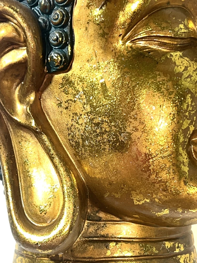 Seymour Mann Buddha Bust Head Figurine Statue Gold-Tone Gilt Resin 12.5" H x 7" W x 7" D Signed Great gently used condition with some minor normal usage wear including some small scuffs, see pics.