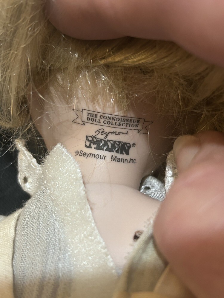 This cute little doll is missing one of her shoes and suck. Her dress. Looks like it is yellowed with age. Her hair is a little messy that could just be moved out of her face. She has some fantastic curl to it. She needs some TLC. Her bow is on her head and she assigned that her clothes could be washed.