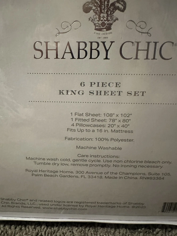 Brand: Shabby Chic Room: Bedroom Department: Adults Pattern: Floral Theme: Flowers, Romantic Type: Sheet Set Features: Machine Washable Size: King Care Instructions: Machine Wash Character: The King Color: Multicolor Material: Polyester