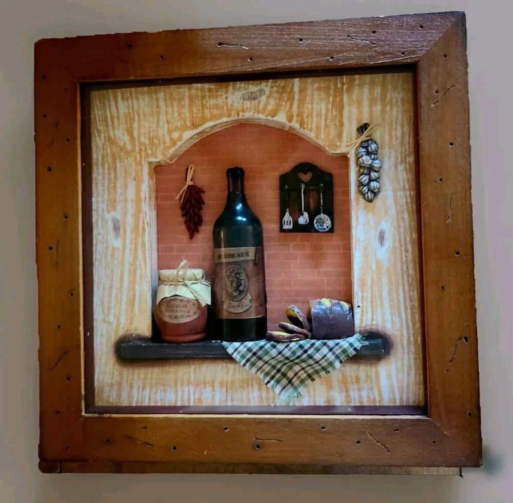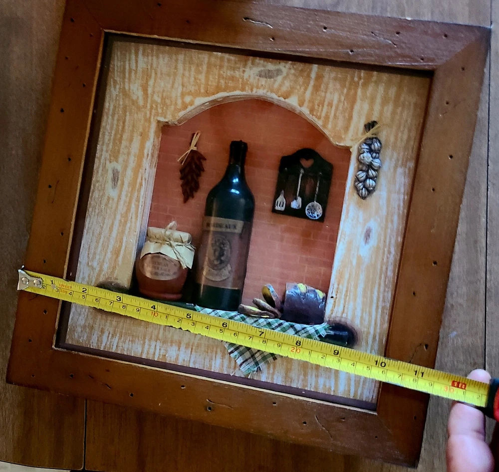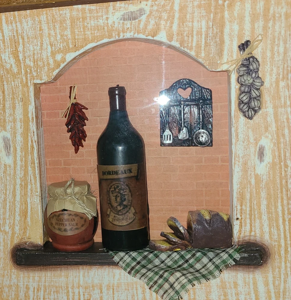 This stunning 3D Shadow Box Miniature Art features Wine Bottles, perfect for any room in your home. The Antique Wine Theme adds a touch of elegance and sophistication to your space. Measuring 11.5 inches square, this piece is made of high-quality Wood and Glass and comes framed for easy display. The intricate details of the Wine Bottles, bread, etc. will leave you in awe and add a unique charm to your home decor. This piece is perfect for art lovers and wine enthusiasts alike. Bring a touch of class to your home with this beautiful Antique Wine Theme 3D Shadow Box Miniature Art.