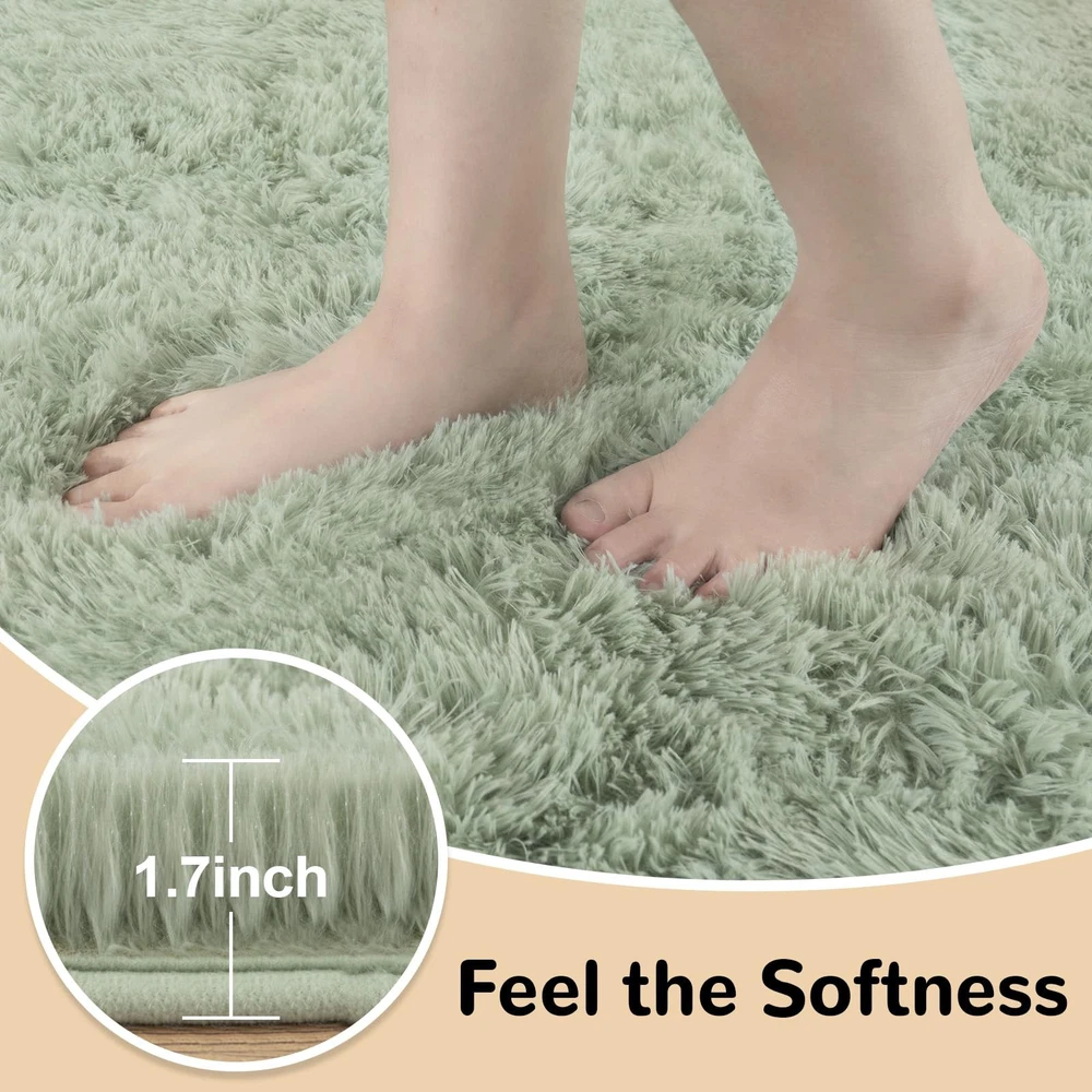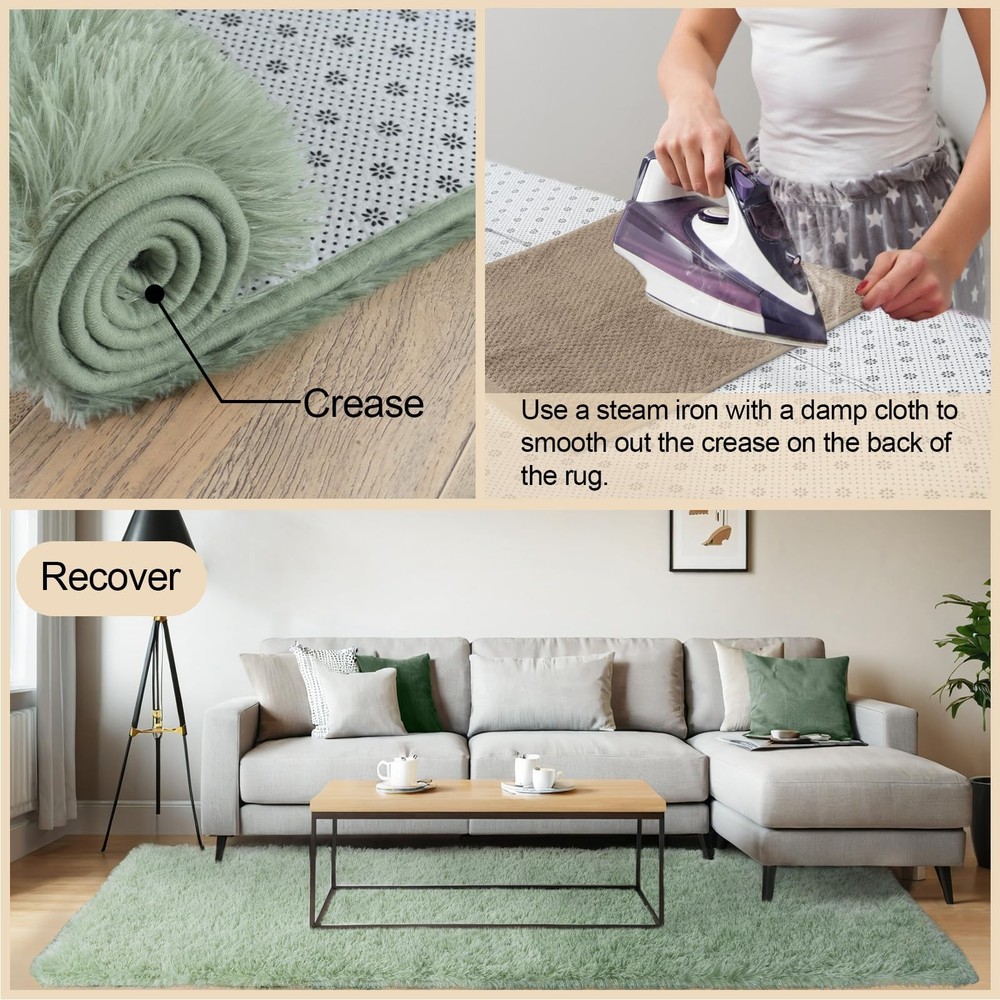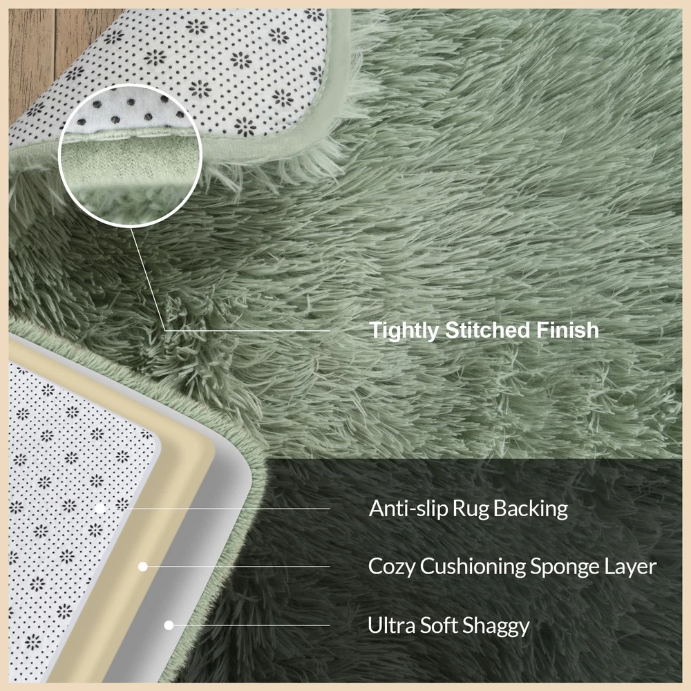 About our shag rugs: Ultra-soft shag rug with a pile height of 1.4 inches and a backing thickness of 0.27 inches, providing a comfortable and relaxing feel. The top layer is made of ultra-fine polyester fibers, while the intermediate layer is memory foam, with securely stitched edges for long-lasting durability. Each plush rug comes with 4 anti-slip rug pads to prevent corners and edges from curling or sliding during daily use.