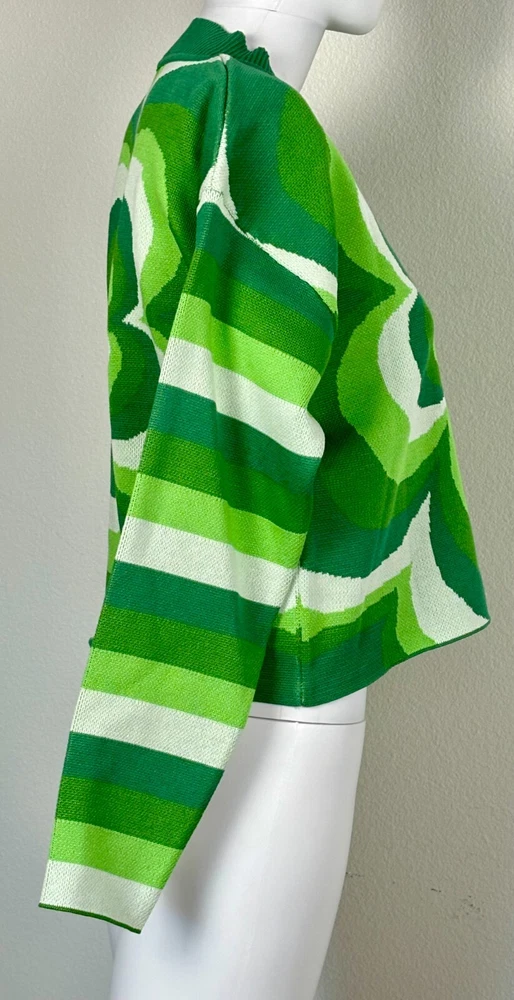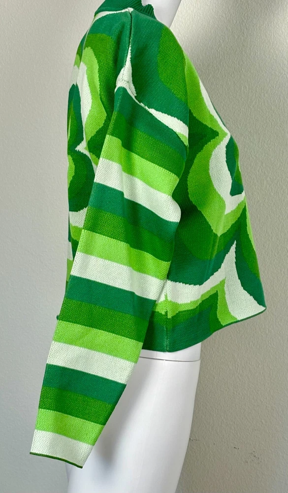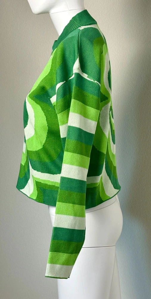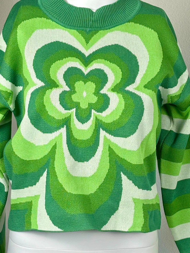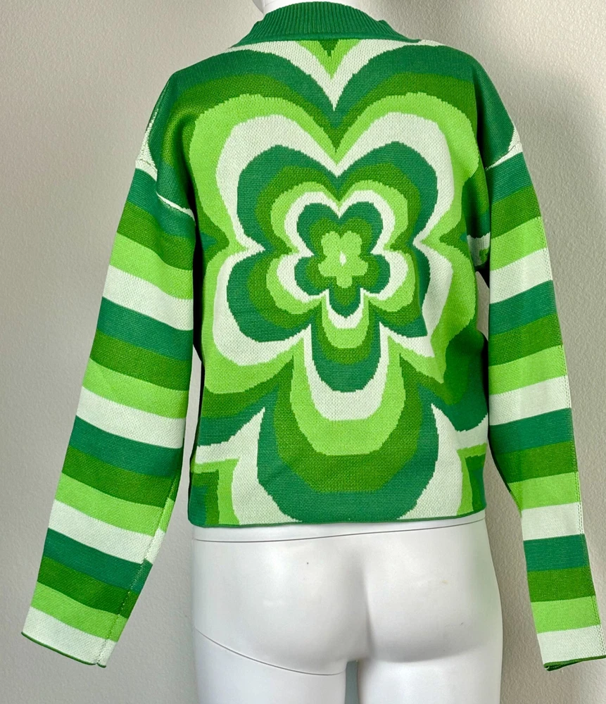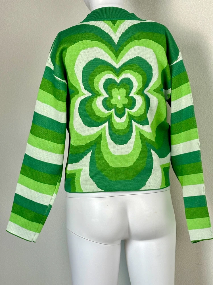 Shamrock Cropped Sweater Women's Size S Ribbed Crew Neck Green and White Y2K. Sweater is unbranded but just has a really cool look to it. See photos for measurements. We offer combined shipping to help save you some money!! (Simply reach out to me to apply discount) PLEASE NOTE: Colors may differ slightly in shade from photos to actual item. We greatly appreciate your business! Please remember to leave positive feedback if you are happy with your purchase! Thanks for looking!