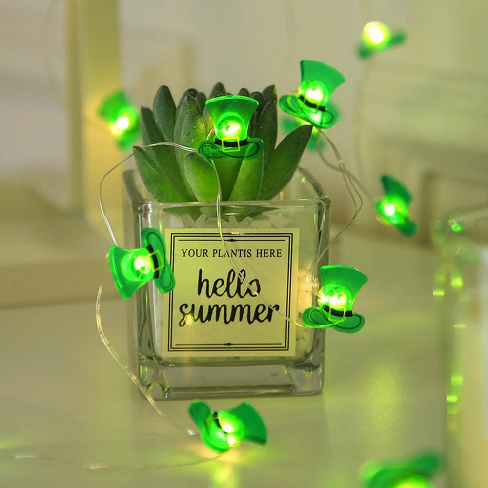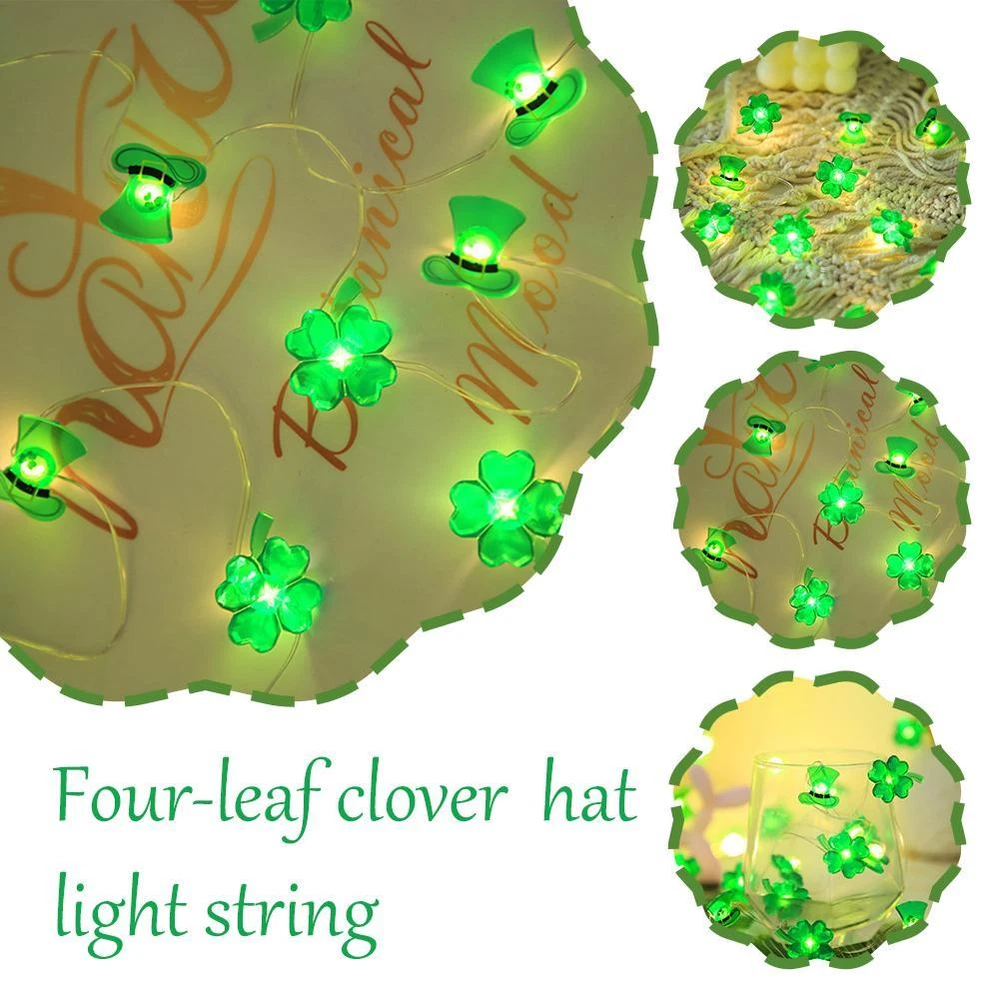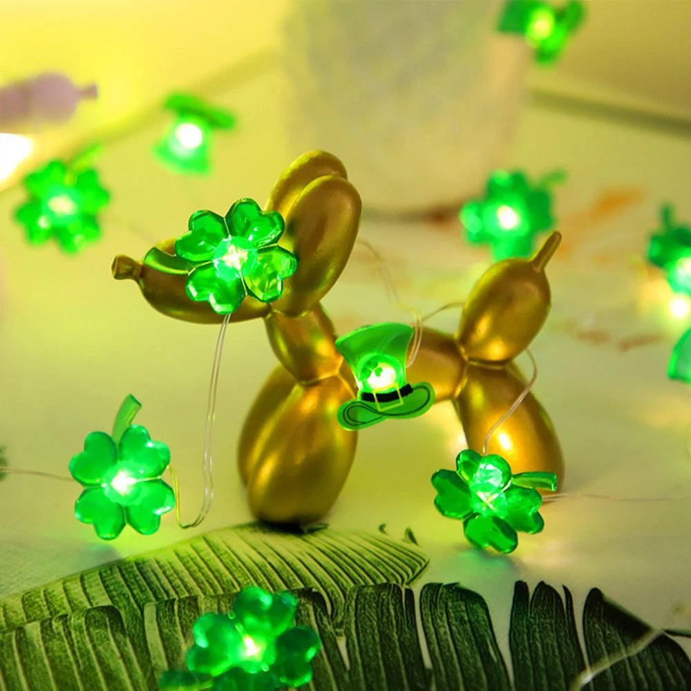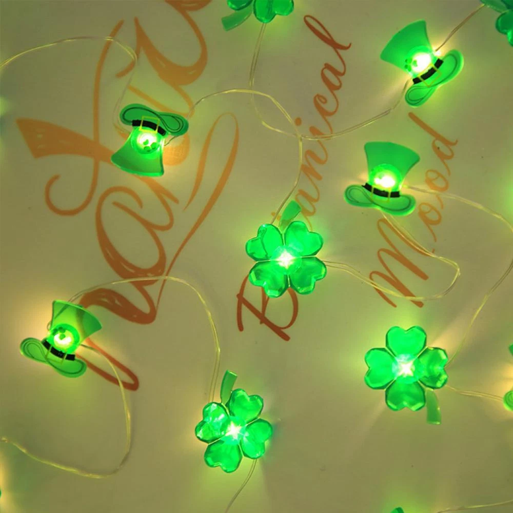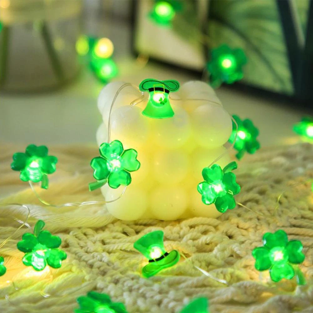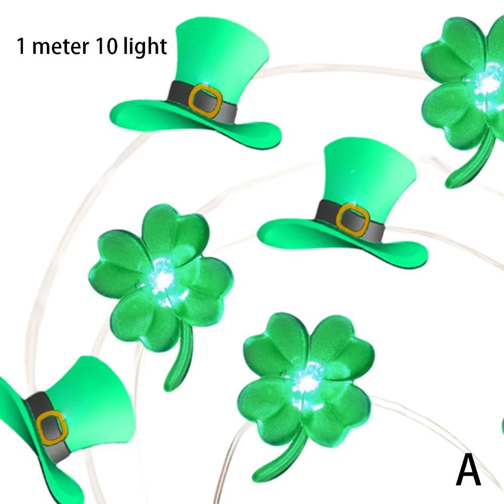 Shamrock Fairy String Lights for St. Patrick's Day - 10/20 LED Bulbs 1/2m T7N7