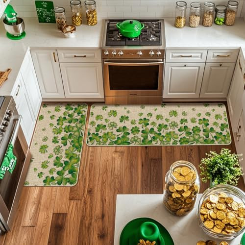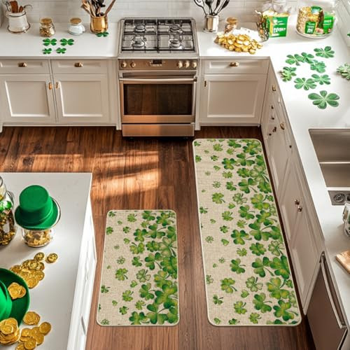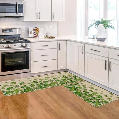 Return Policy Fast Delivery Trusted seller Shamrock St. Patrick's Day Kitchen Mats Set of 2, Lucky Home Decor Low-Profile Kitchen Rugs for Floor - 17x29 and 17x47 Inch Product Description PERFECT FOR HOME DECOR : Make your kitchen more stylish and comfortable with these durable, unique, seasonal kitchen mats. Add a pop of color in the entryway and protect your floors too. Perfect for any kitchen, deck, patio, porch, veranda and entryway DURABLE AND NON-SLIP : Backed with non-slip recycled rubber and topped with polyester felt that is low-profile to reduce chances of tripping, high-quality durable construction that is stain resistant 2 PIECES INCLUDE: Measures 17" x 29" and 17" x 47", features 0.25" slim. One long and one short making them just the right size for the kitchen. Our stylish kitchen mats make a beautiful addition to your kitchen, dining room, craft rooms and office spaces EASY TO CLEAN: No scrubbing needed. Kitchen mats are quick and easy to clean, just spray off with a hose or use a sponge and mild detergent to clean off dirt or yard debris. Material: 5% Polyester 95% Rubber. Imported, Country of origin: China UNIQUE CUTE DESIGN : Doormat tops were printed with unique and stylish patterns. A beautiful and creative way to decor your home when keeping clean Shipping Returns Payment Shipping Shipping is FREE to all addresses other than APO/PO boxes in the lower 48 states. All our stock ships from US-based warehouses. Shipped via USPS or UPS (depending on location and package weight) Unless stated otherwise, all orders will ship within 24-72 hours of your payment being processed. Check our feedback to see the great reviews of FAST shipping we offer. Returns Seller does not accept returns Payment We currently accept payment via eBay managed payments only. Once payment is cleared, we will dispatch your shipment within 1-3 business days. Please refer to the "Shipping" tab for more information regarding shipping speed to your destination.