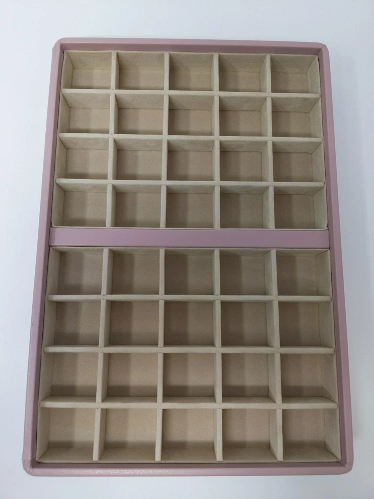 LUXURY JEWELRY ORGANIZER TRAYS – Offering premium storage for earrings, rings, wedding bands, bracelets, necklaces, and chains these jewelry trays for women help you neatly organize and protect all your favorite beautiful pieces. SOFT VELVET INTERIOR FABRIC – The boxes on the inside of our cute jewelry tray system are covered in an ultra-soft velvet to better protect precious metals and gemstones from scratches, scuffs, or damage for better short- and long-term storage. PREMIUM FAUX LEATHER EXTERIOR – Our stackable velvet jewelry trays organizer boxes are covered in a handmade, high-quality faux leather that’s soft, durable, and provides a beautiful texture that really helps enhance the look of your jewelry. EXPANSION STORAGE COMPARTMENTS – These drawer jewelry organizer trays are 12.5” x 8.6” x 1.5” in size and features tons of square and rectangular boxes to help you store and organize all those stunning pieces without having to stack them up. ELEGANT BIRTHDAY GIFT IDEA FOR WOMEN – From birthdays to anniversaries to Mother’s Day to Christmas these jewelry trays make wonderful gifts for sisters, moms, best friends, and special girls in your life who love collecting brilliant jewelry pieces.