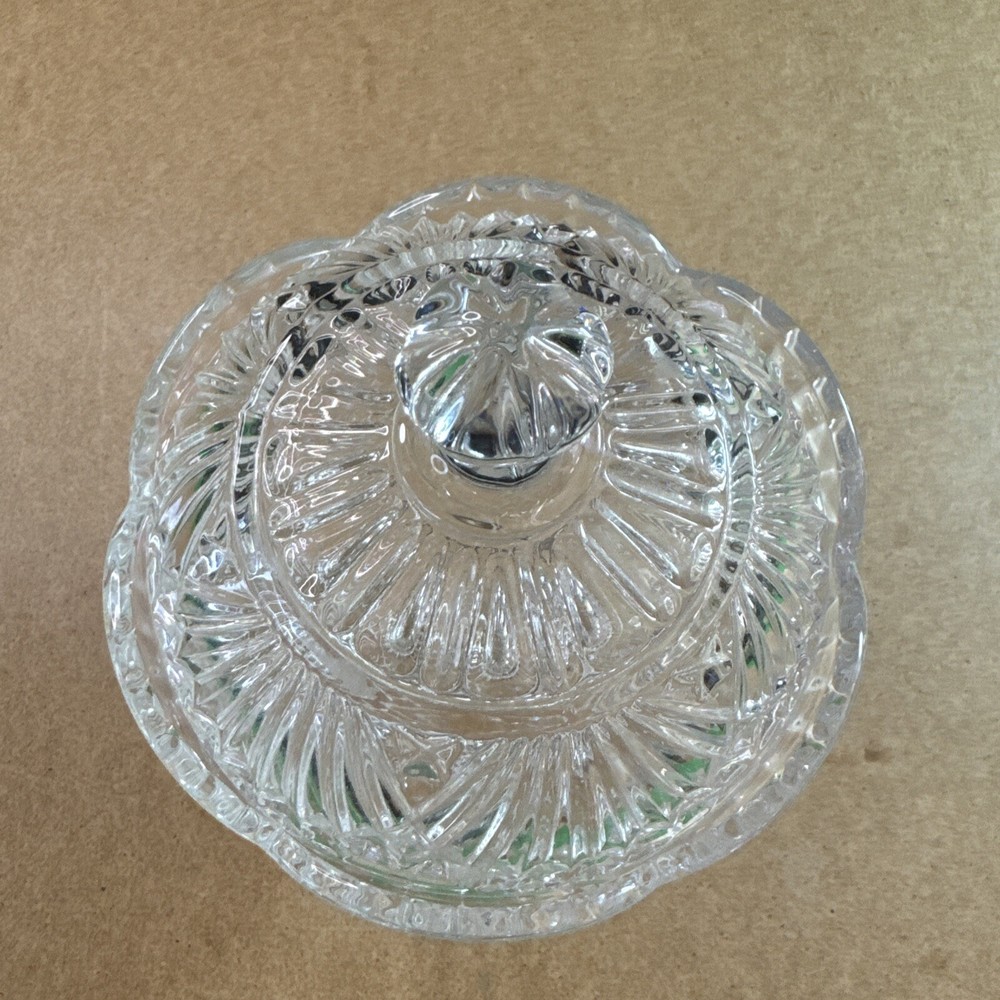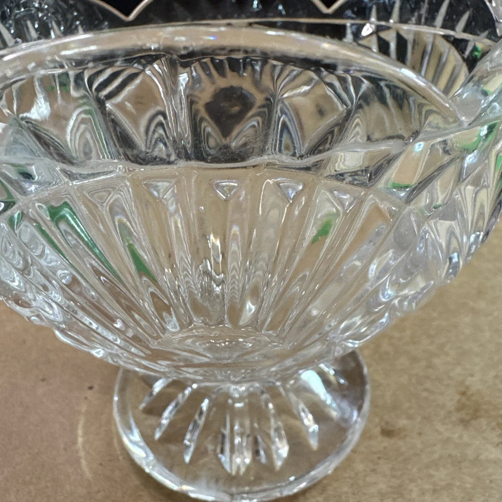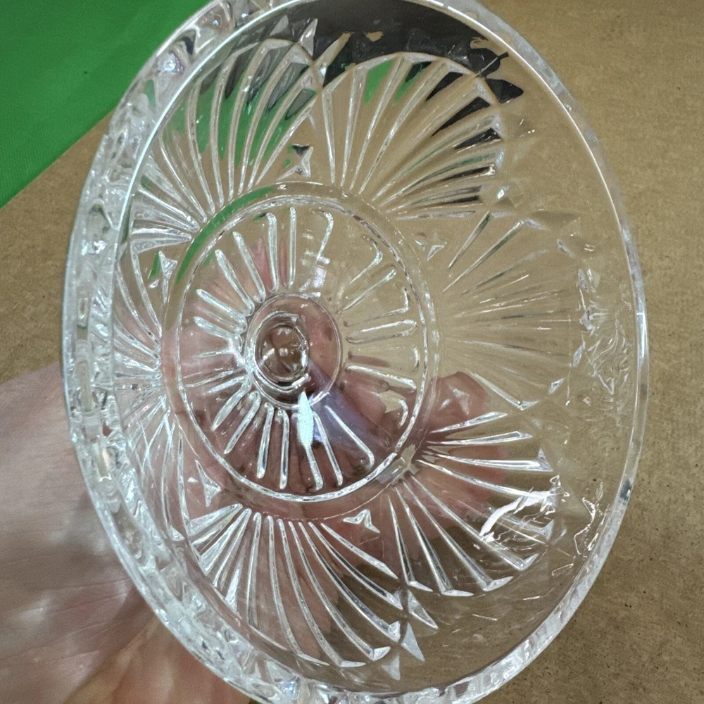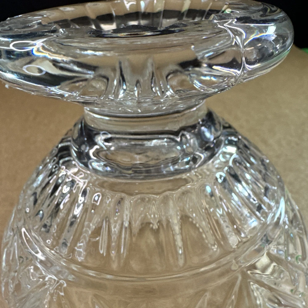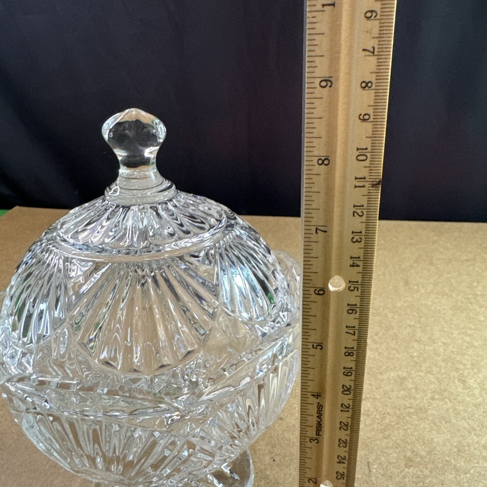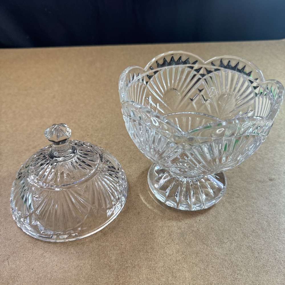 Elevate your display with the Shannon Crystal Covered Candy Dish, a piece that exudes vintage elegance. Masterfully crafted in Slovakia, this dish showcases the meticulous workmanship characteristic of fine crystal glassware. The heavy cut crystal design, including the iconic "Freedom" pattern, refracts light beautifully, creating a sparkling display on any surface. With its pristine clear color, this vintage original by Shannon Crystal adds a touch of sophistication to your home. Whether used for special occasions or as a permanent addition to your decor, this candy dish is a testament to timeless style and quality craftsmanship. Perfect for those who appreciate the artistry of cut glassware.