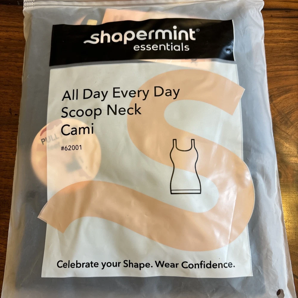 This Shapermint cami is the perfect addition to your shapewear collection. Designed with a scoop neckline and made from a blend of 90% nylon and 10% spandex, this cami offers high compression and a slimming effect. It comes in a classic black color and is available in size medium. The cami is perfect for wear under any outfit and is ideal for those who want to achieve a flattering silhouette. The compression area focuses on the abdomen, making it a great choice for anyone who wants to enhance their waistline. With its versatile style and features, this Shapermint cami is a must-have for any woman's wardrobe.