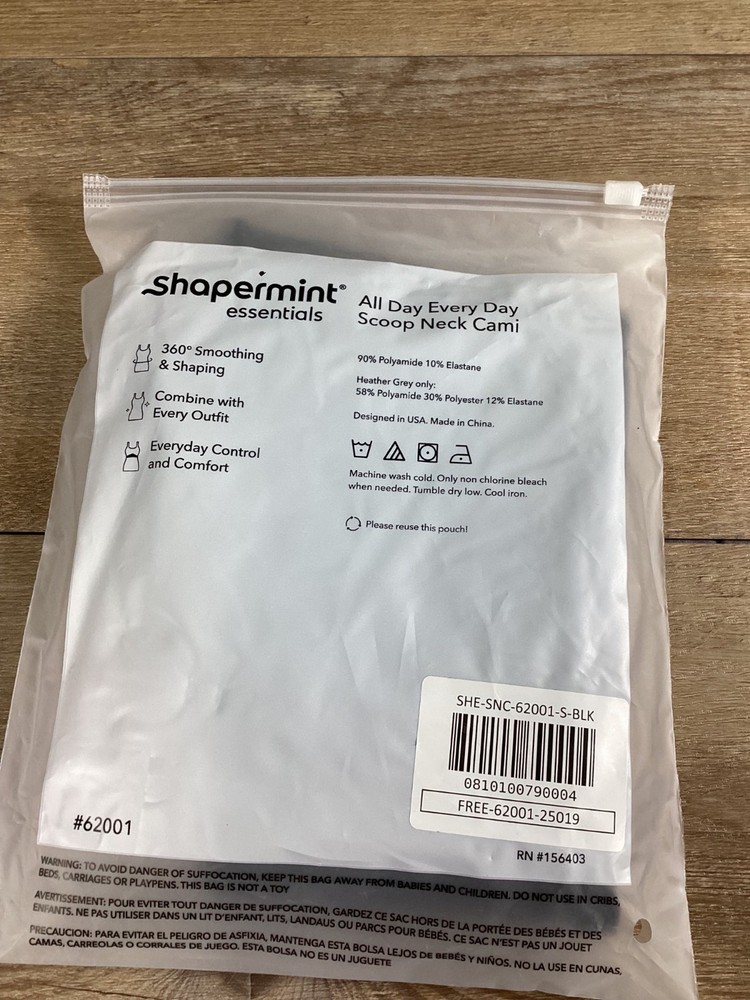 Shapermint Essentials All Day Every Day Scoop Neck Shapewear Cami S Black NEW