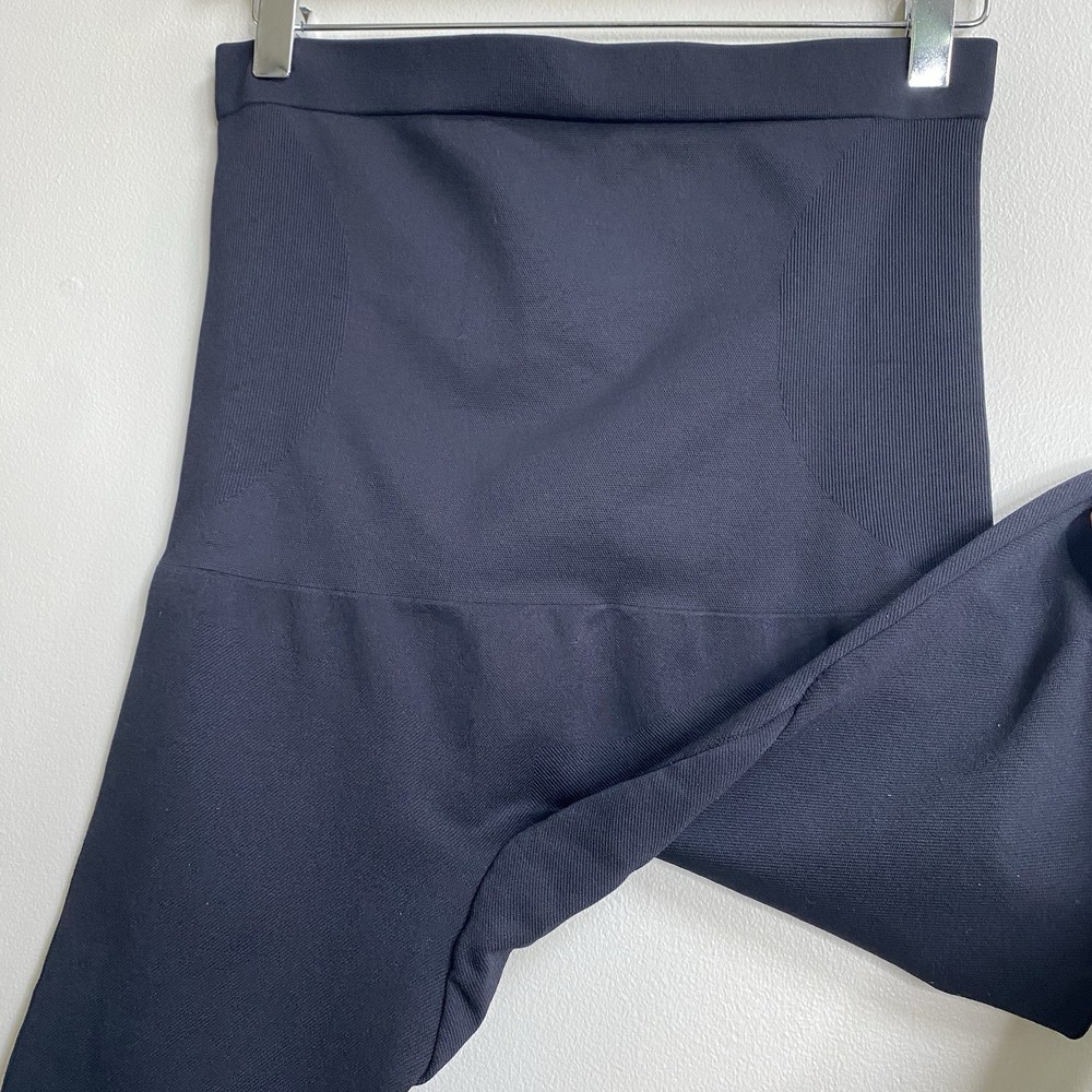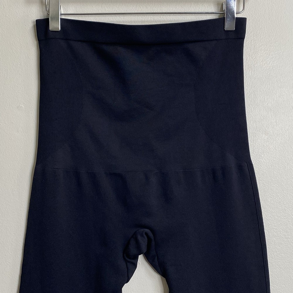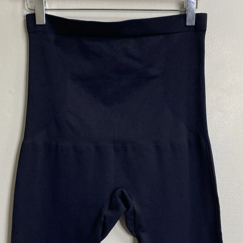 Crafted for all-day comfort and confidence, the High Waisted Shaping Leggings are designed with breathable, moisture-wicking fabric that seamlessly smooths and shapes your curves from waist to ankle. Featuring an anti-slip silicon strip for a secure fit these shaping leggings are the versatile shapewear essential that goes with every outfit for any occassion. Opaque solid black color. High rise with silicon gripping waistband lining. Knit construction. Color: Black Size Extra Large = 14 - 16 Measures Flat Approximately: 14" Waist, 13.25" Rise, 22" Inseam 96% Polyamide / 4% Elastane Machine Washable **These leggings are preowned, and show light wear! No stains or holes! There is some fraying or thining to the knit on the back left side near the waistband! SEE PICTURES! Good Condition!**