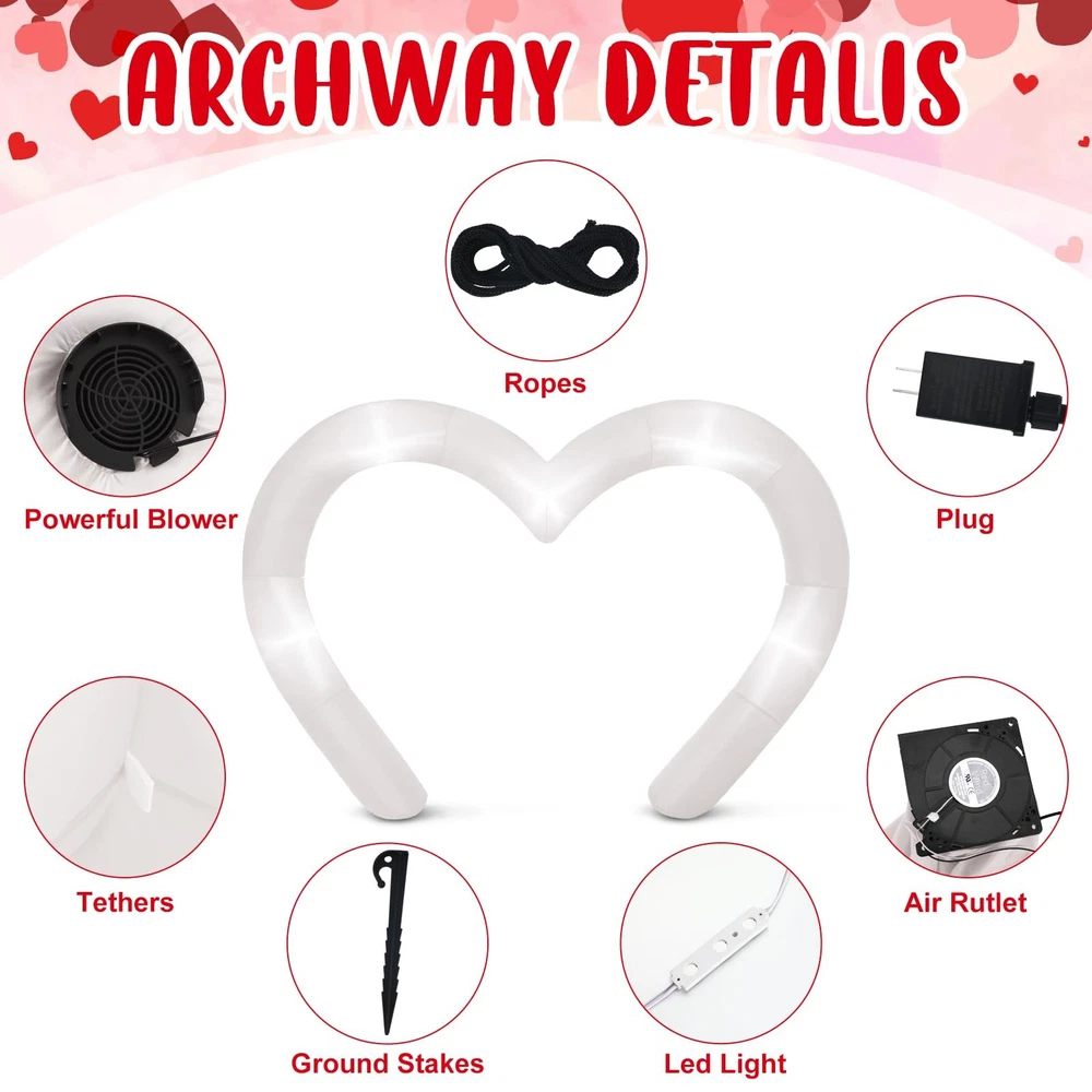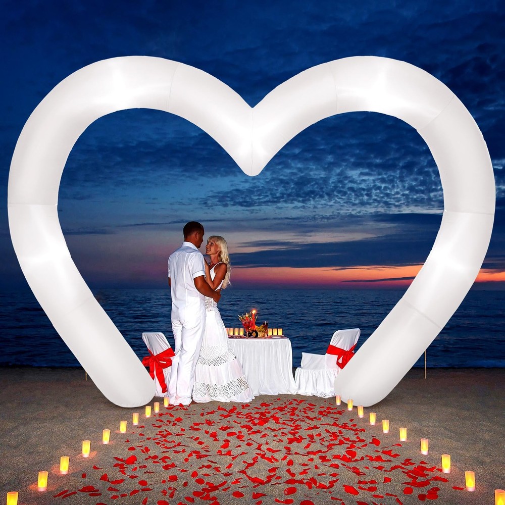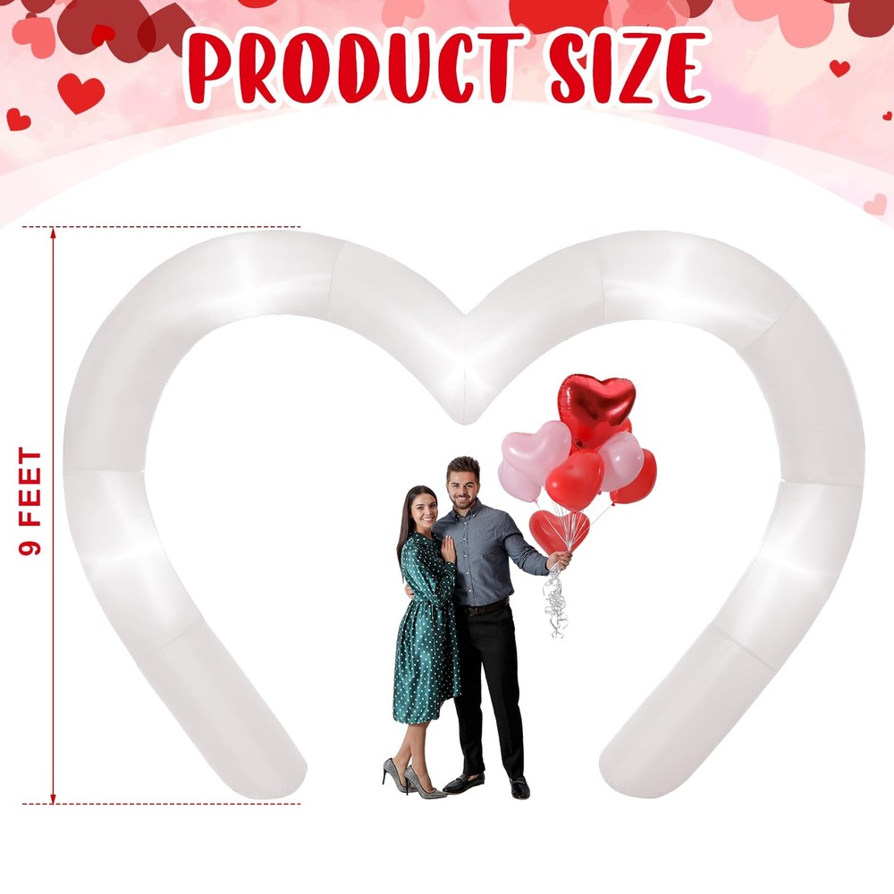 Shappy 9 ft Wedding Inflatables Outdoor Decorations Heart Blow up 9 FT, White Description Features:Package includes:The package includes all necessary tools for effortless set up. Such as 1 blower, 1 plug, 4 stakes, and 1 rope, allowing for quick and easy installation.Large size:Inflatable heart archway with LED lights measures approx. 9 ft. This inflatable's huge size makes it a nice centerpiece for any Valentine's celebration.Specifications:Material: PVCColor: whiteSize: approx. 9 ftPackage includes:1 x Valentine's Day inflatable archway with build-in LED1 x Plug4 x Stakes1 x Rope1 x Powerful blowerNotes:Manual measurement, please allow slight errors on size.The color may exist a slight difference due to different screen displays.Blow up is just descriptive use, please note our brand is Shappy Features: Wedding Decoration: our wedding decoration features a heart appearance, creating a captivating entrance to your home or event; What makes it extra special is the built in LED lights, setting a romantic mood for everyone passing under it; If you are looking for inflatable decorations for wedding, this wedding inflatable archway is definitely the ideal choice for you LED Lights: our wedding inflatable with LED lights has built in LED lights, casting a soft, romantic glow fitting for evening celebrations; Once inflated, your wedding PVC inflatable archway becomes the centerpiece of attention; Blow up inflatables archway is ideal for Valentine's day, wedding, anniversary, Christmas, yard, garden, lawn and party Durable Quality: Wedding outdoor indoor archway is produced from quality materials, withstanding outdoor conditions, ensuring durability, reliability, longevity and resilience; Wedding inflatables archway outdoor incorporates modern LED lights, ensuring a captivating sight day and night, creating a romantic atmosphere for guests and passersby Easy Inflation: this package includes the Wedding inflatable archway have everything you need for a quick and easy setup, such as electric blower, stakes, and tethers; When you plug it into a standard power outlet, the blower will inflate automatically; The rope and stake can hold it in the ground, no worrying about being blown away by the wind Easy Store: Wedding white heart archway inflates and deflates easily, don't worry about setup and storage, saving you storage space; Heart inflatable archway is a quality inflatable product that adds an extra romantic touch to your living space, front lawn, or garden; Blow up wedding archway will last through countless wedding celebrations Product Details: Handling We will ship all orders within 1 business day of payment. Delivery We Do Not Ship Outside of the Continental US. Return Policy All items qualify for returns within 30 days of receipt. Buyer is responsible for return shipping on any item that is not damaged. Feedback We take our reputation seriously, we buy and sell online, so we understand the value of trust. If you are unsatisfied with your order, please contact us and we will work with you to resolve it to your satisfaction.