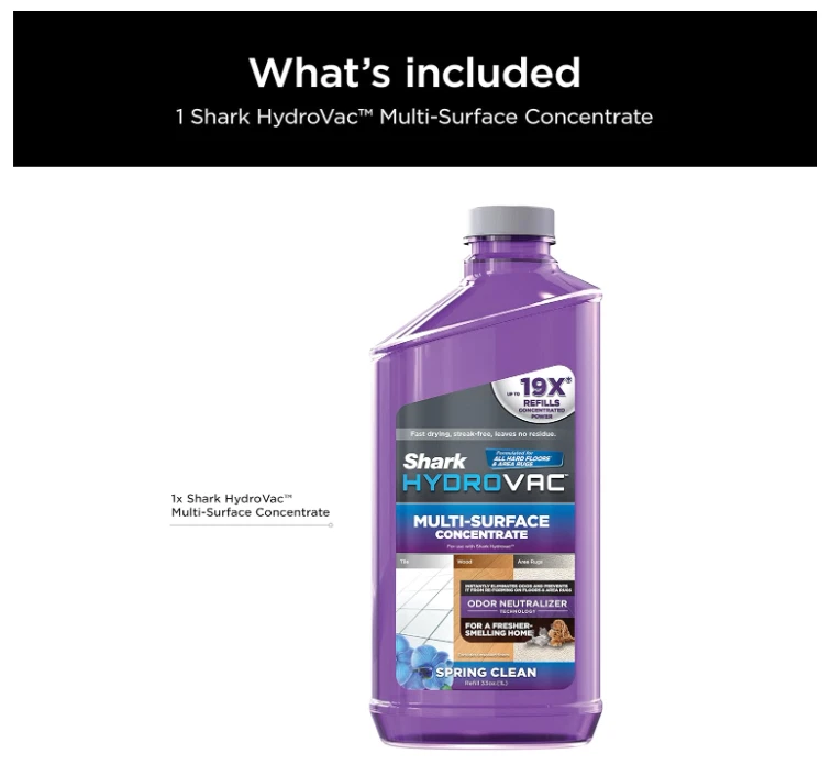 Shark HydroVac Multi-Surface Concentrate with Odor Neutralizer for Hard Floors & Area Rugs Brand Shark Item Form Liquid Scent Clean Scent Specific Uses For Product Floors,Tile Material Feature Scented About this item ELIMINATES ODORS: The Shark HydroVac Multi-Surface Concentrate with odor neutralizing technology instantly eliminates and prevents odor from reforming on sealed floors and area rugs for a fresher smelling home. STREAK-FREE: The fast-drying formula tackles tough messes to reveal a clean, streak-free finish on your floors with no residue. MULTI-SURFACE: Formulated to clean area rugs and all sealed hard floors including hardwood, tile, marble and laminate. BEST RESULTS: Use the Shark HydroVac Multi-Surface Concentrate with any Shark HydroVac vacuum, mop and self-cleaning system. PERFECT FOR PET OWNERS: Removes tough pet messes, eliminates odors and leaves a refreshing, spring clean scent. WHAT'S INCLUDED: 33oz. Shark HydroVac Multi-surface Concentrate. . We offer FREE shipping on all orders! . We ship within Five business days of payment, usually sooner. . We use a selection of shipping services such as UPS, FedEx, USPS etc. . We only ship to the lower 48 states, no APO/FPO addresses or PO Boxes allowed. . Local pickups and combined shipping options are not provided at this time. . Your satisfaction is a wonderful reward for our efforts. Please assist us by leaving a positive review if you feel pleased with our service. . In the event that you encounter any difficulties related to your order, please do not hesitate to reach out to us directly through the Messaging system on the Ebay platform. Kindly consider opening a COMPLAINT or a RETURN REQUEST as a last resort, only after all other possible measures have been attempted and we have been unable to provide you with assistance. . We will get in touch with you within 24 hours and make every effort to ensure your satisfaction. . Please rest assured of our service quality.