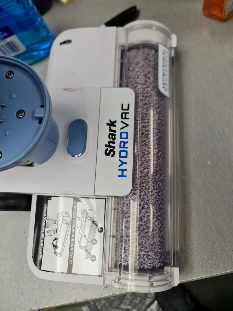 Has some signs of use. Filter is also somewhat used. Includes vacuum with charging base in original box. 3 IN 1 CLEANING : The Shark HydroVac Cordless Pro XL vacuums, mops and cleans itself at the same time to deep clean hard floors and clean area rugs. WET plus DRY MESSES: The powerful suction and hydro mopping pulls in dirt and debris, wet messes, stains and grime to leave a streak free, clean surface that you can walk on almost immediately. STARTS CLEAN, STAYS CLEAN: The continuous self cleaning system helps prevent dirt from being redeposited back on your floor and the antimicrobial brushroll helps prevent odors and bacteria on the brushroll. Brushroll treated with antimicrobial substance to preserve roller and resist bacterial odors on the brushroll. MULTI SURFACE CLEANING: Designed for all sealed hard floors including hardwood, tile, marble, laminate. It also removes surface dirt and odors from area rugs. ELIMINATES ODORS: The Shark HydroVac 12 oz. multi surface concentrate with odor neutralizer technology instantly eliminates and prevents odor from reforming on floors and area rugs. Perfect for pet owners. EASY CLEAN UP: The debris filtration technology in the dirty water tank is designed to separate solids from liquids so you can quickly and easily empty the tank. Place the HydroVac on its dock after every use and activate self clean mode so it is clean and ready for the next use. EXTRA LARGE CLEAN TANK: The intelligently designed system in the XL clean tank combines smart suction and flow control to maximize cleaning efficiency. LED DISPLAY: Seamlessly transition between floor types with the touch of a button on the LED display that also provides real time battery life indicator, surface type and tank levels. CORDLESS CONVENIENCE: Enjoy cordless cleaning power so you can seamlessly transition between rooms without being tied to an outlet. WHAT'S INCLUDED: Shark HydroVac Cordless Pro XL 3 in 1 multi surface cleaner, 1 antimicrobial brushroll, 1 foam filter and 1 charging dock. Brushroll treated with antimicrobial substance to preserve roller and resist bacterial odors on the brushroll.