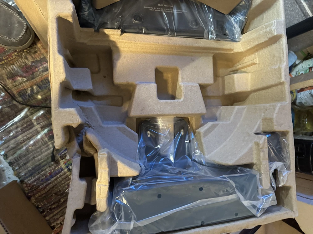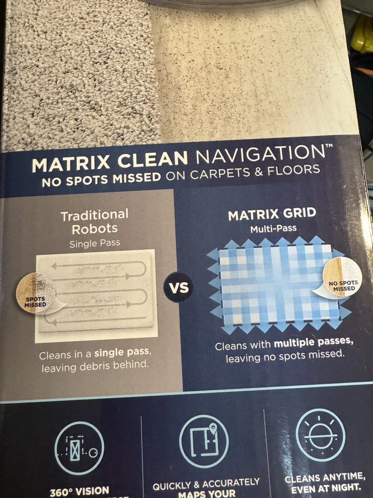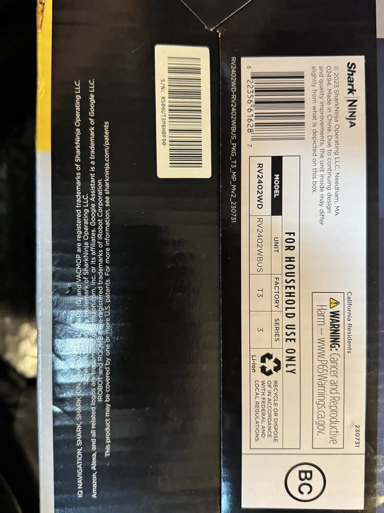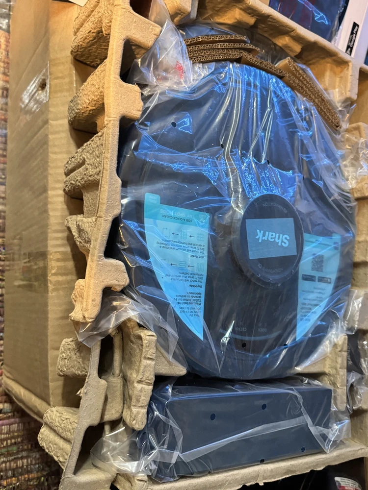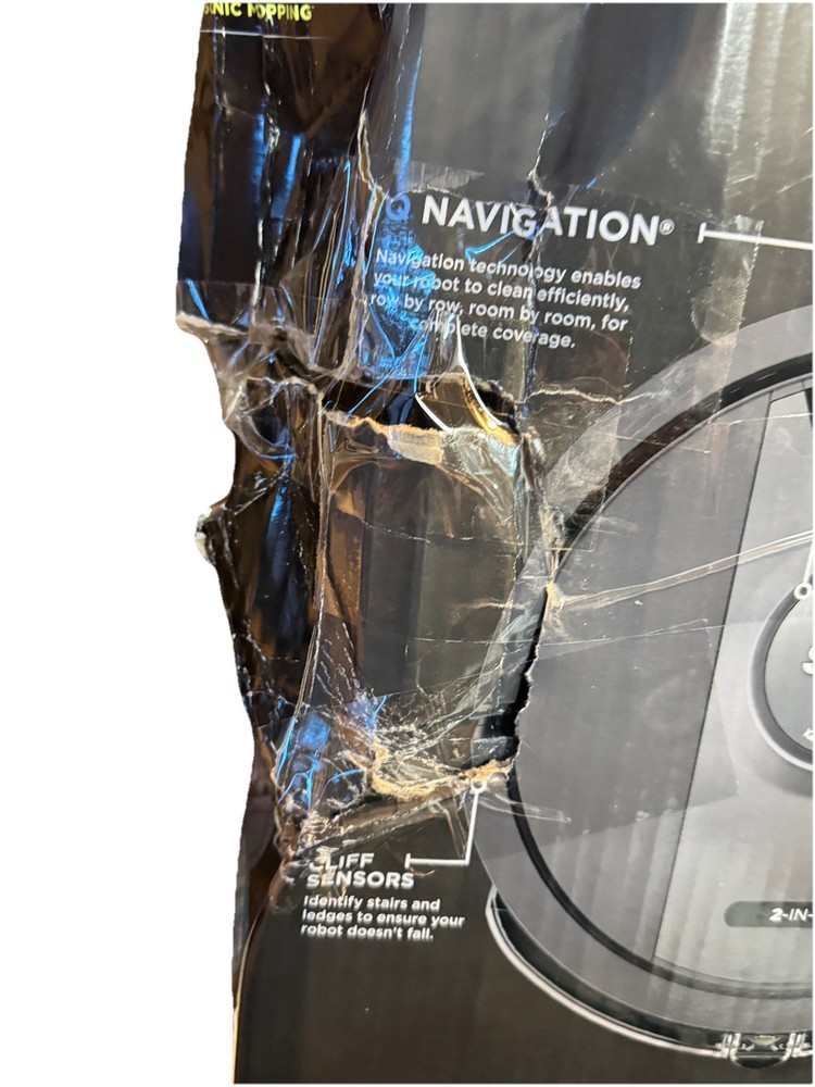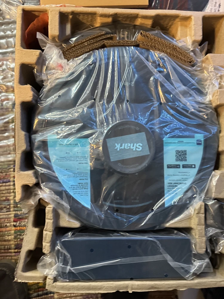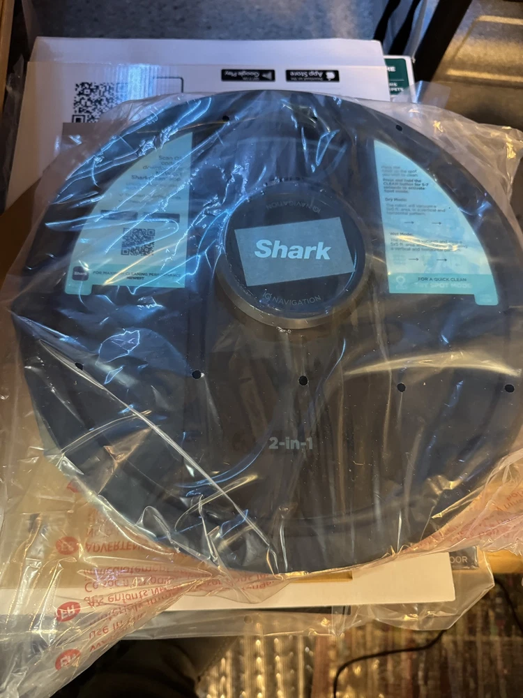 Brand new Shark IQ 2in1 Robot. Box has damage from the handle ripping on side as you can see by pics inside is factory, undamaged, and unused. Any concerns or questions please ask. Shark IQ 2-in-1 Robot Vacuum and Mop with Matrix Clean Navigation is a black bagless robotic vacuum that is compatible with Amazon Alexa. It has a runtime of 60 minutes with a 3-hour charge time and features pet hair removal, multi-surface cleaning, carpet cleaning, edge cleaning, and self-propelled functionality. The vacuum includes filters, a floor brush, and charger, and is equipped with Wi-Fi for smart home control.