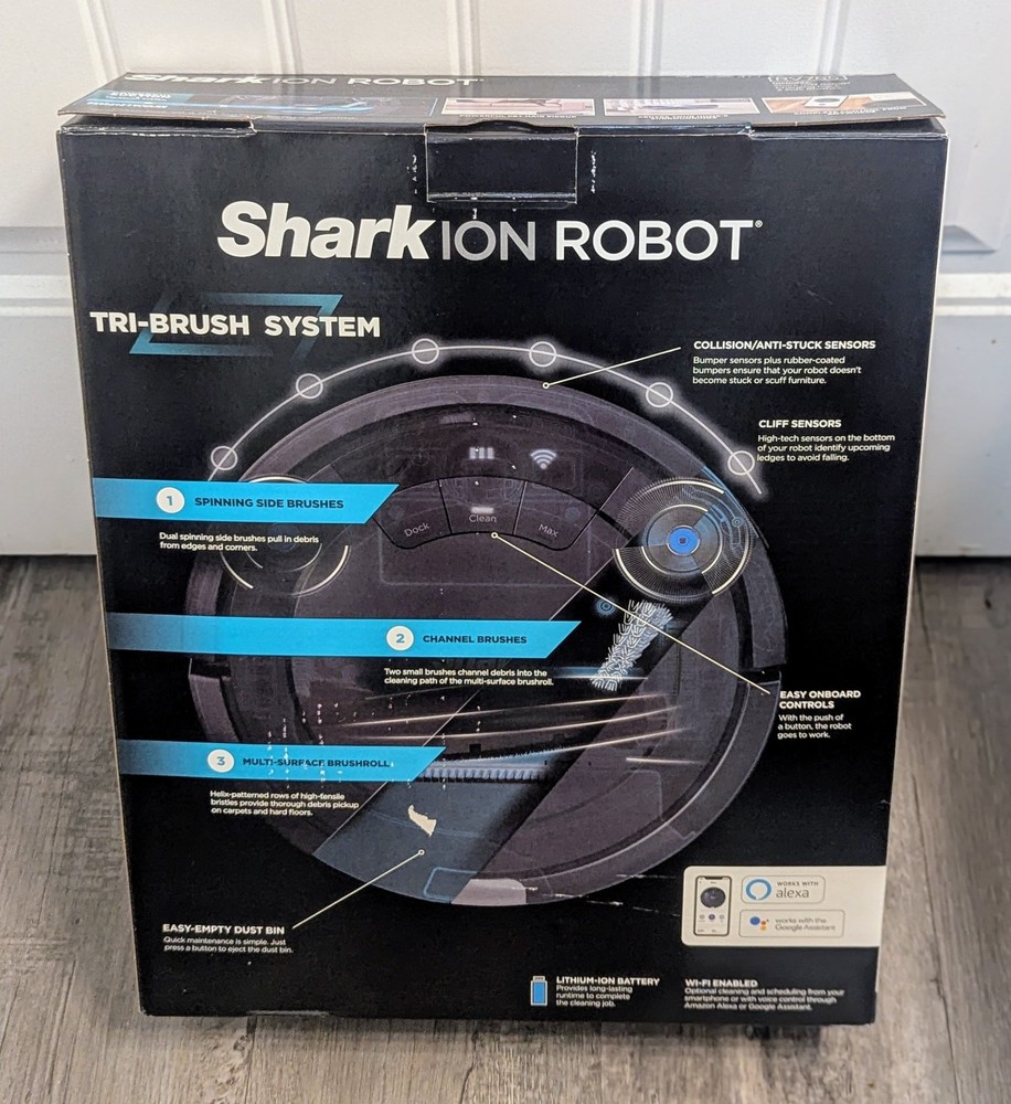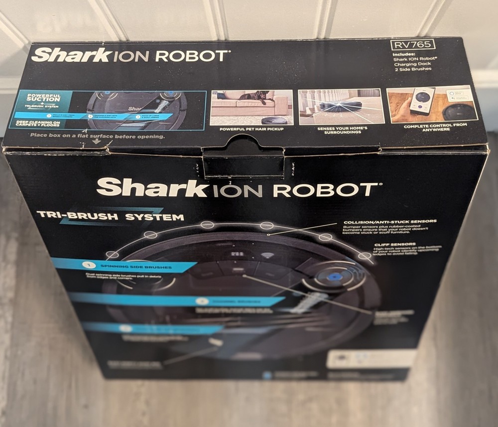 Introducing the Shark Ion Robot Vacuum RV 765, a state-of-the-art robotic vacuum cleaner designed to make your life easier. With its smart app control feature, you can easily navigate and control the vacuum from the comfort of your couch. The vacuum comes with a floor brush and charger, making it easy to clean and maintain. This cordless vacuum is perfect for those who value convenience and efficiency. Its bagless design ensures that you won't have to worry about constantly changing bags, and its sleek design fits seamlessly into any home décor. The Shark Ion Robot Vacuum RV 765 is a must-have for anyone looking for a reliable and efficient robotic vacuum cleaner.