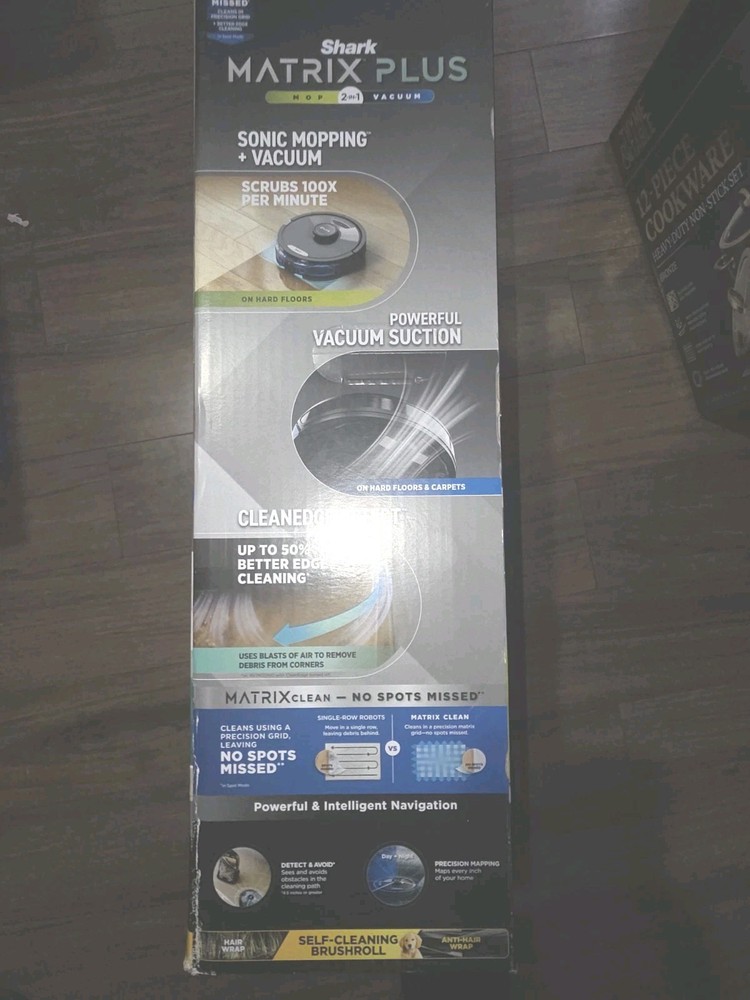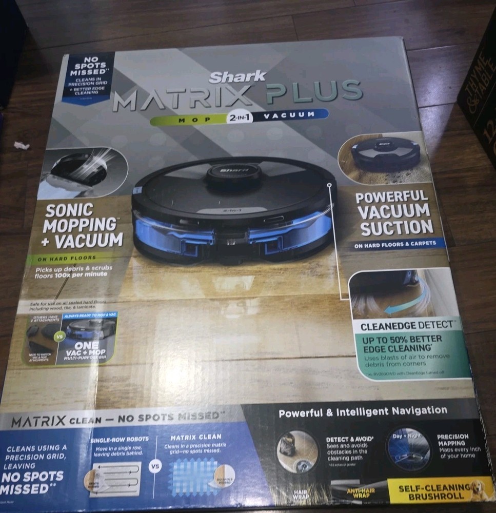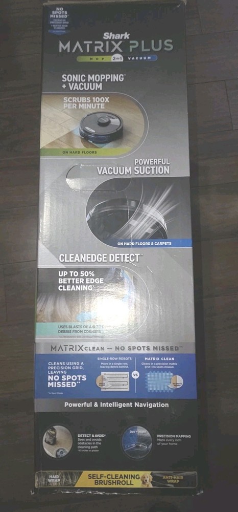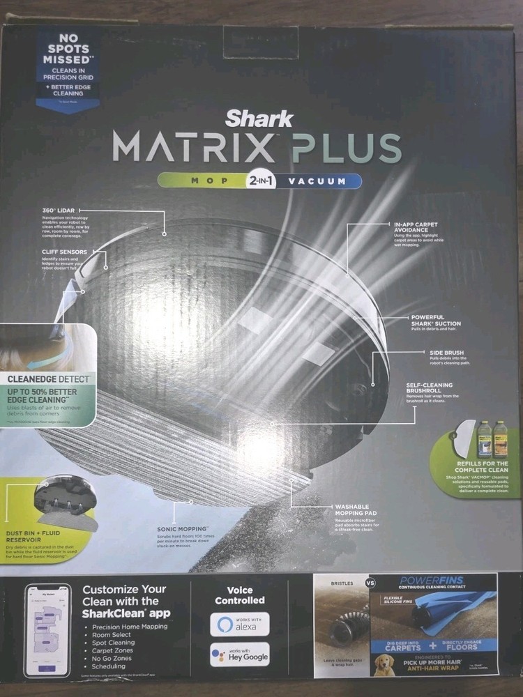 The Shark Matrix 2-in-1 Robot Vacuum and Mop is a brand new home mapping vacuum cleaner with Wi-Fi compatibility. This black robotic vacuum offers a runtime of 60 minutes and a charge time of 1 hour. It features HEPA filters, pet hair removal capabilities, and operates on a cordless design with a power of 2400 W. The Shark RV2400WD model includes a charger and is compatible with Google Home for smart home integration. Made in China, this bagless vacuum offers a capacity of 0.3-1.0 L and comes with a 1-year manufacturer warranty.