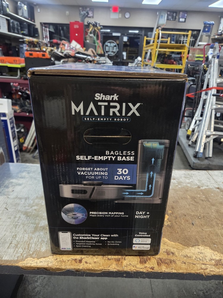 The Shark Matrix Self-Emptying Robot Vacuum with 30 Day Dock in Black is a sleek and efficient robotic vacuum cleaner designed for hassle-free cleaning. With a runtime of up to 120 minutes and a charge time of just 1 hour, this bagless vacuum features HEPA filters for clean air and is compatible with Amazon Alexa for convenient voice control. The Shark brand is known for its quality and innovation, making this unit a reliable choice for maintaining a spotless home. The included accessories like the charger make it easy to keep your robot vacuum running smoothly.