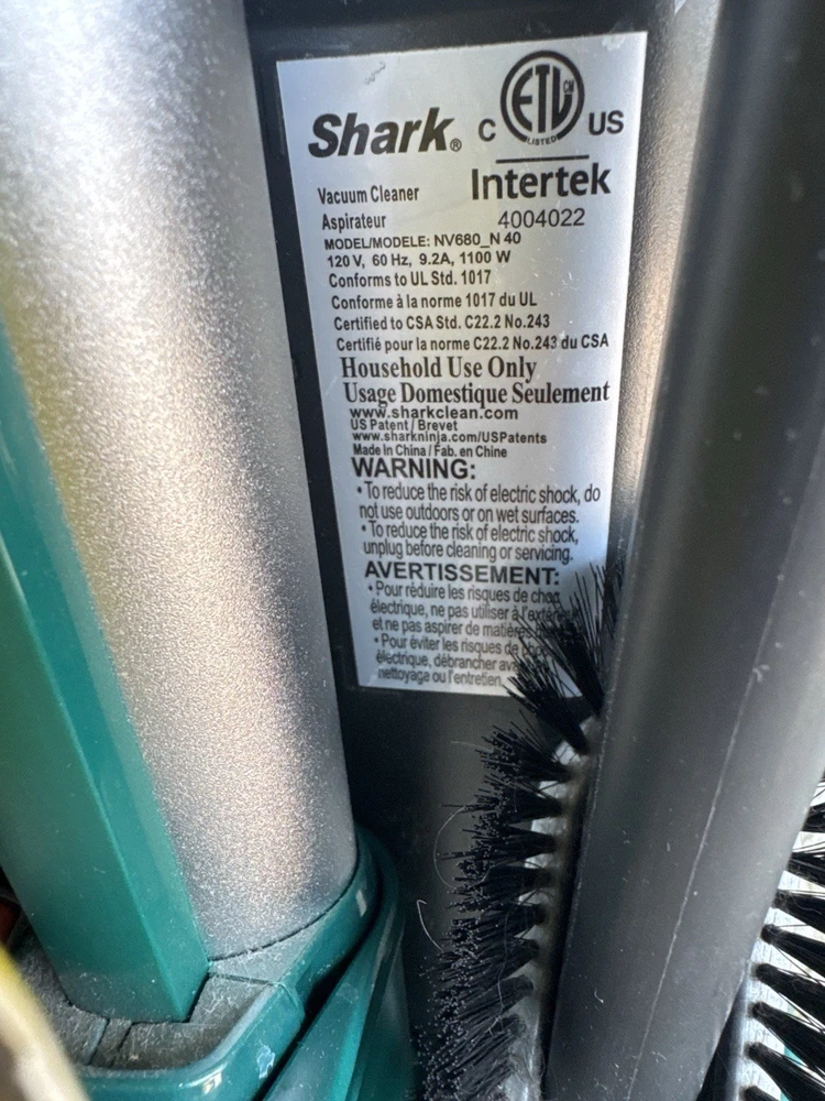 Up for sale is a Shark Rotator Speed Upright Vacuum Cleaner – Model NV680 in excellent working condition. This powerful vacuum features: • Powered Lift-Away Technology – easily clean under furniture or convert to a canister-style vacuum • Anti-Allergen Complete Seal + HEPA filter • Strong suction with 1100W motor • Swivel steering for better maneuverability • LED headlights to illuminate hidden debris • Multiple attachments included (dusting brush, crevice tool) • Detachable dust cup for easy emptying ✔️ All parts and functions have been tested and work perfectly. ✔️ Clean and ready for use. 🔌 Cord and hose are in excellent condition. Model: Shark NV680 N 40 Color: Green/Teal Power: 120V, 60Hz, 1100W Made in China