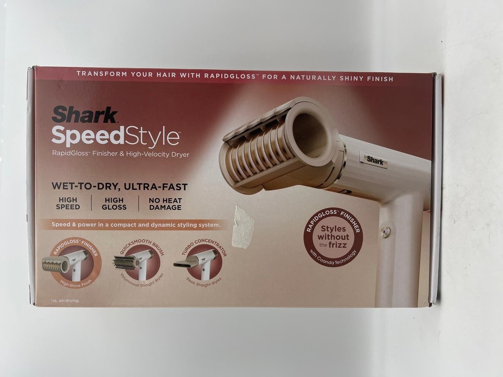 Condition: Open Box, Grade A, Device Functions Properly, All Pieces Included The Shark SpeedStyle HD331 Hair Dryer dries hair quickly without heat damage. It includes three versatile styling tools and suits straight and wavy hair. Using a hair dryer at home should be simple and safe. The Shark SpeedStyle HD331 lets you style like a pro without overheating your hair. It is made for speed and safety. Its advanced digital motor and heating system monitor temperature 1,000 times per second. This keeps air below 110°C (230°F). Your hair stays strong, and you keep its natural shine and smooth look. This hair dryer offers three professional attachments. The RapidGloss Finisher smooths down flyaways for a salon-polished style. It relies on Coanda Technology for excellent shine. The QuickSmooth Brush is perfect for everyday use. It helps with drying, volumizing, and straightening your hair, all at once. The Turbo Concentrator is great for precise styles. Focus on one section at a time for smoother, straighter hair.The Shark SpeedStyle HD331 stands out for its light weight. At just 1.69 lbs, it is easy to hold. Your arms will not get tired, even with longer sessions. Its compact design and balanced weight also make it perfect for travelers. Pack it easily when you are on the go.Smart technology makes it easy for everyone to use. The dryer senses which attachment you put on. It then adjusts heat and airflow. You get four heat settings, so you can pick cool or warm. Choose from three fan speeds too. Lock in styles with a cool shot. Each tool gives a custom result, fast and safely. This dryer’s digital controls are simple to use. Switch attachments quickly with one click. The quiet, powerful motor lets you style your hair early in the morning or late at night. Designed for comfort, you can hold it from several angles. The long cable gives you freedom to move. Its open-box grade A quality means you enjoy like-new performance for a better price.The Shark SpeedStyle HD331 is also durable. Cleaning is easy. Just clear the filter every few weeks. Attachments snap on and off, so switching between them feels effortless. Store the device and its tools in a safe, dry spot to keep them in great shape.Why choose the Shark SpeedStyle HD331? Prevents heat damage for safer, healthier hair Includes three high-quality styling attachments Quick drying to save time in your routine Ergonomic and lightweight for easy handling Ideal for straight and wavy hair