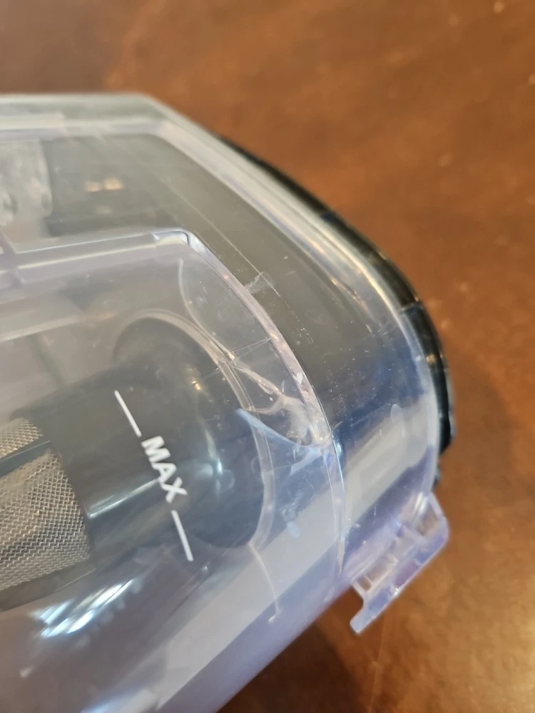 Has a small crack in bottom of Tank see last 2 photos. Does not effect the operation.
