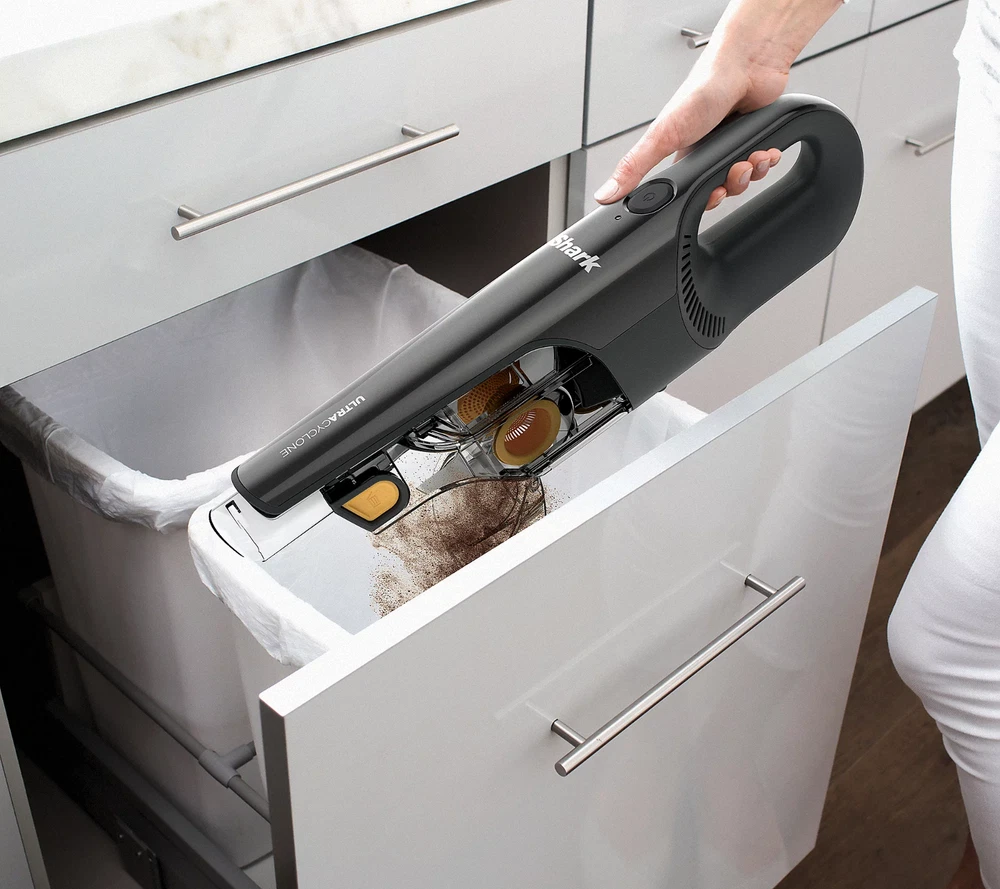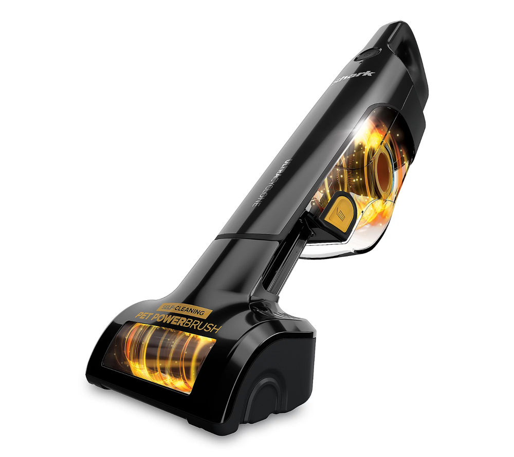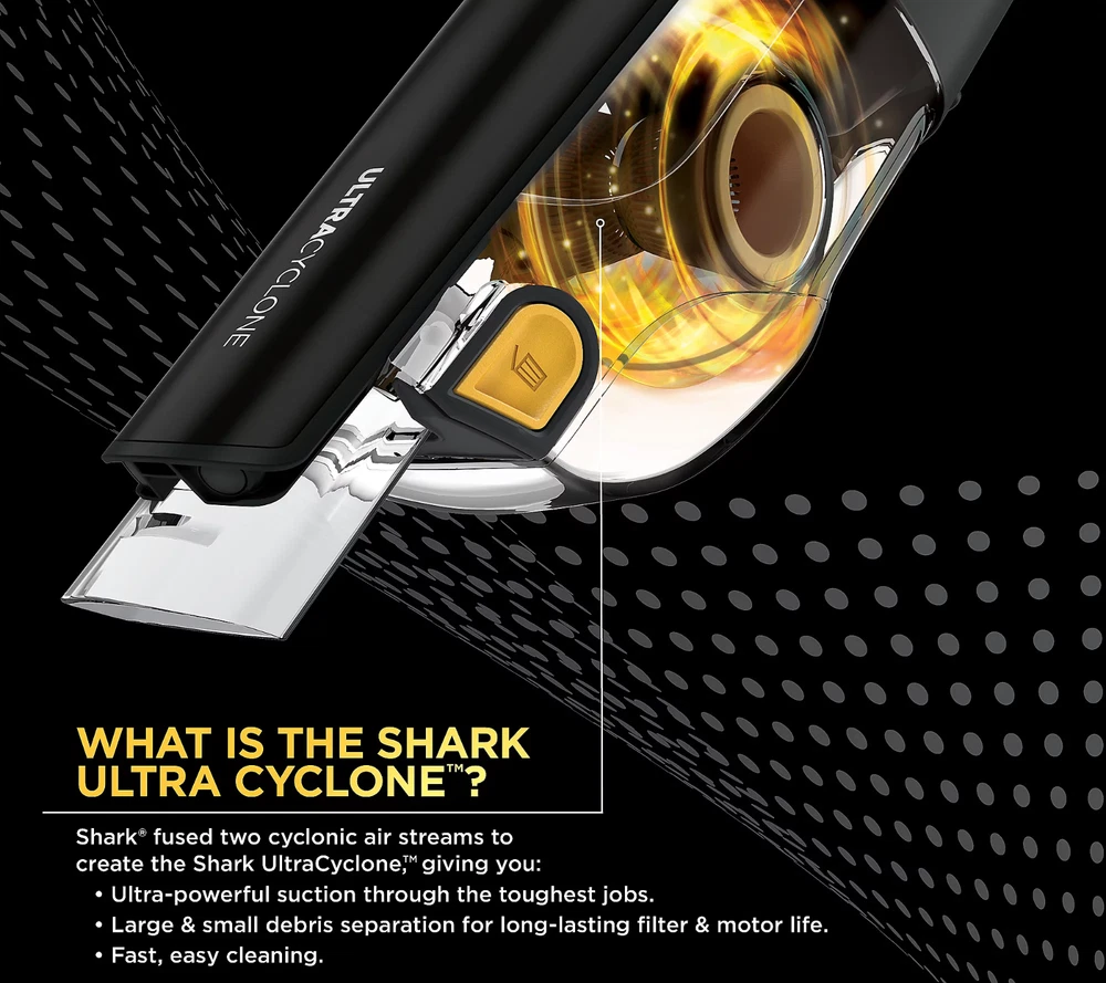 Your floors and surfaces will sparkle thanks to the powerful suction cleaning of this handheld vacuum that targets pet hair and dander. From Shark. Includes CH951QXH hand vacuum, detachable self cleaning pet power brush, crevice tool, scrubbing brush, and documentation 2.5" cleaning path Self-cleaning Pet Power Brush; CleanTouch dirt ejector Two cyclonic air streams Washable filter; XL dust cup Measures approximately 20.82" x 3.82" x 4.35", weighs 2.8 lbs UL listed Imported