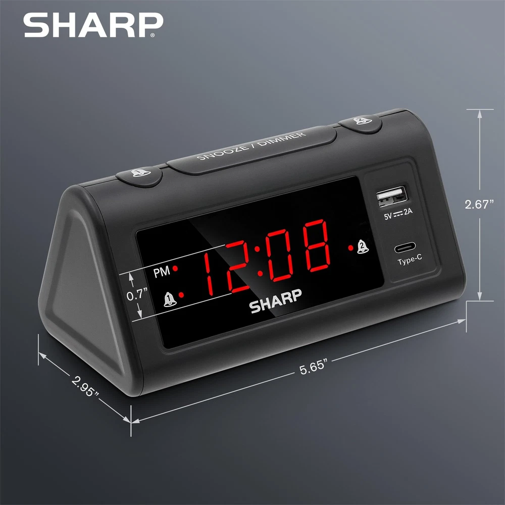 Sharp Alarm Clock for Bedrooms Super Fast USBC Charging and Fast 2 Amp USB C...