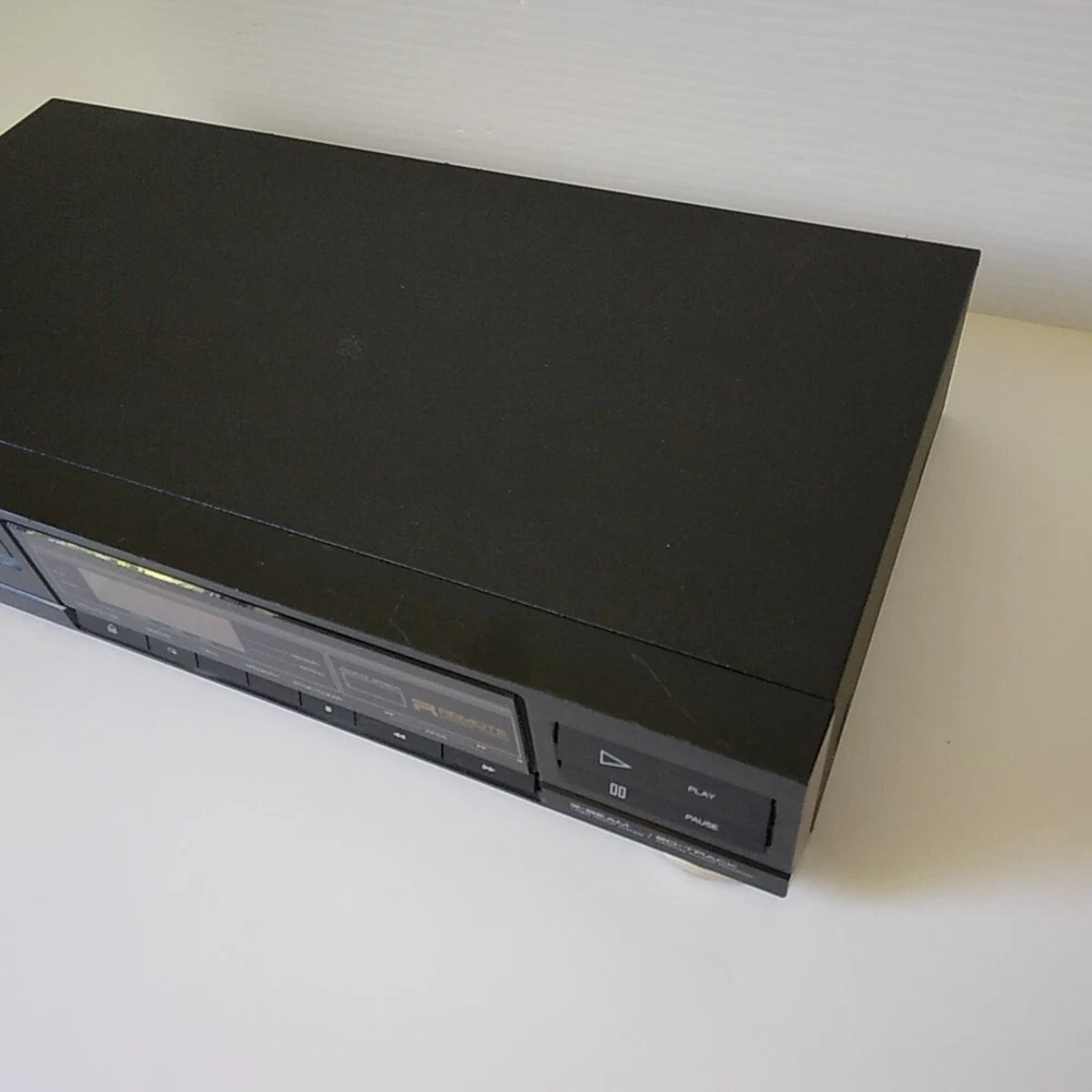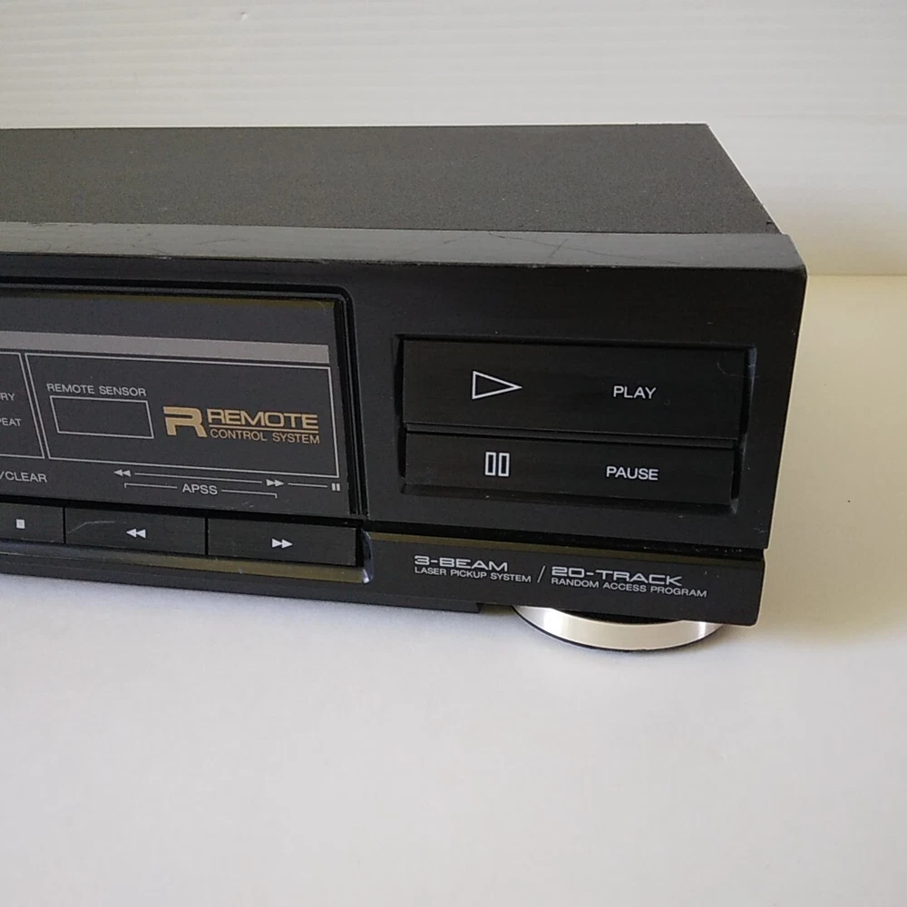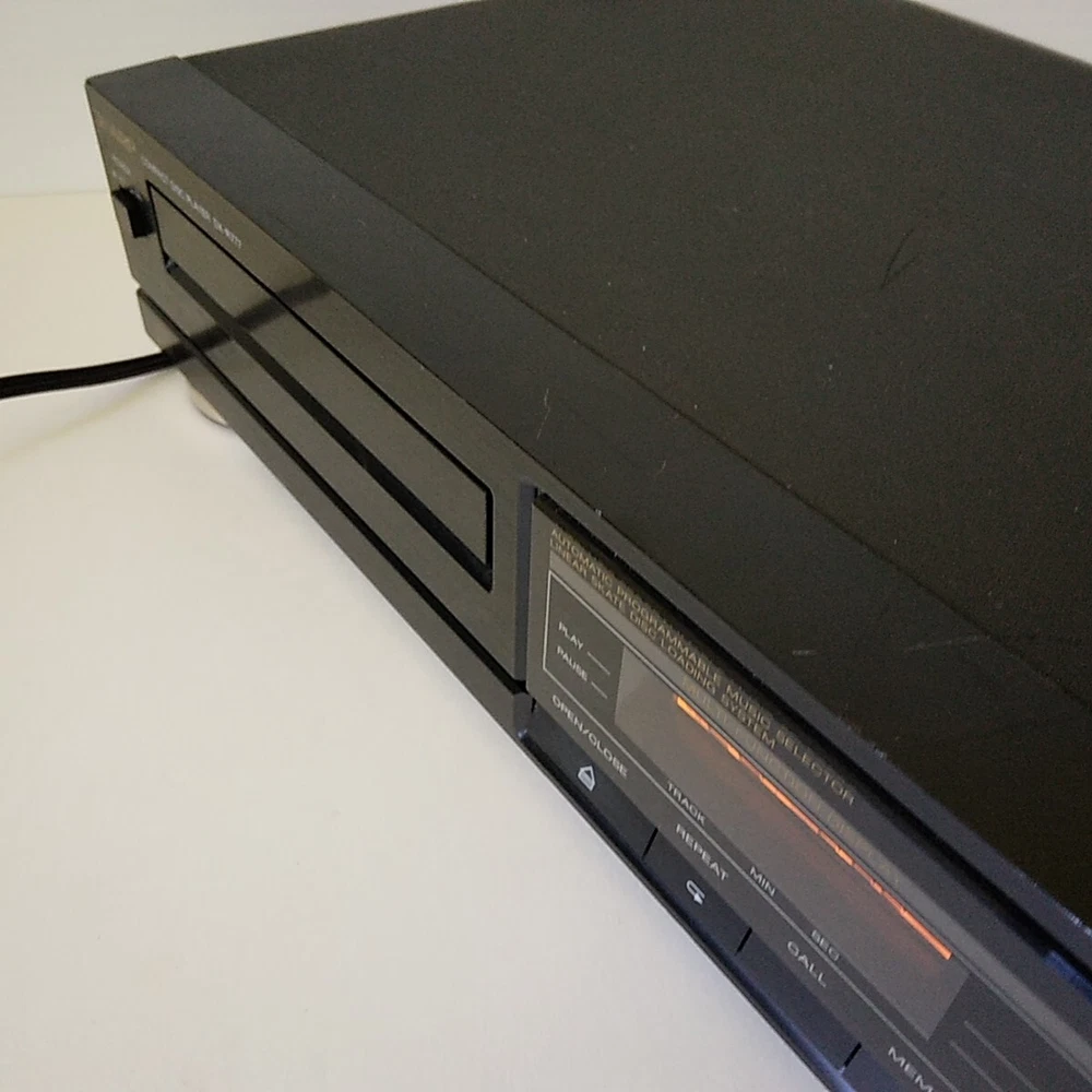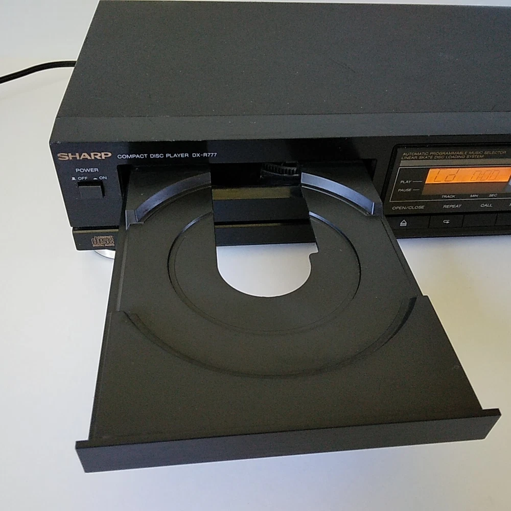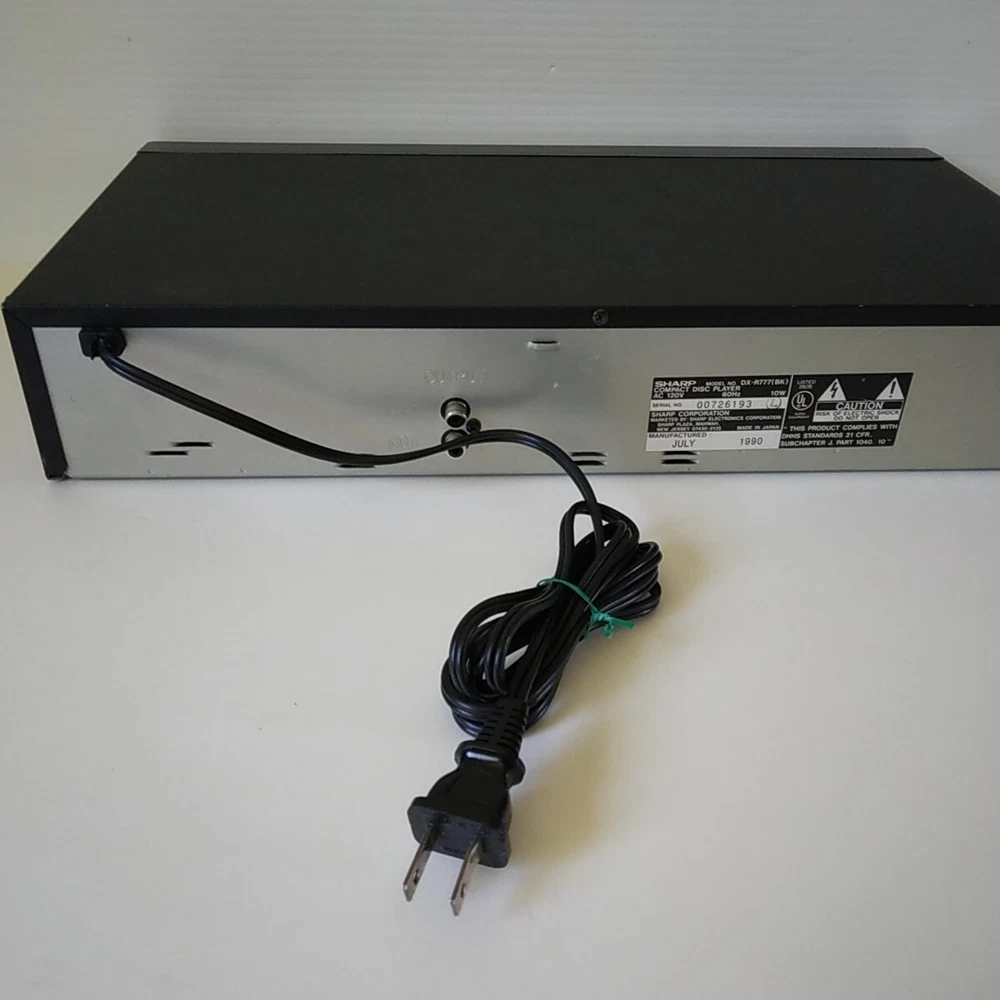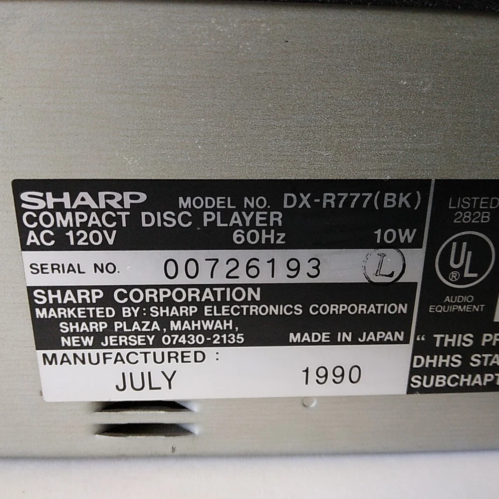 Sharp Model: DX-R777. This shelf CD player has been tested (with speakers) on all functions and works well. 3rd photo shows testing with a small active speaker. Pictures 4 to 8 show a CD playing in the unit. This CD player is in good cosmetic condition all around with minimal scratches mainly at the front top. See pictures for a detailed look. Item will ship well protected. Thanks for the interest in unit.