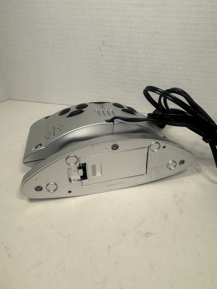 Sharp SPC033 Digital Alarm Clock Electric Silver 6.25" Wide 4" High Red Numbers. Condition is Used. Shipped with USPS Ground Advantage.