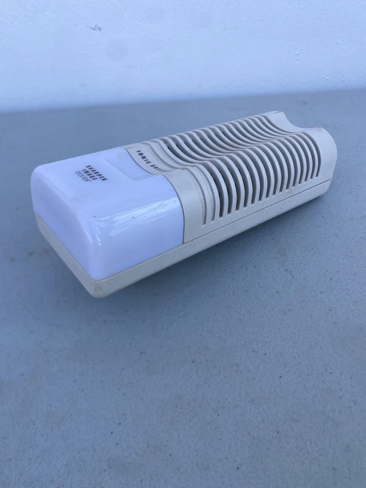 The Sharper Image Ionic Breeze Air Purifier Cleaner Wall Plug SI626 SI628 Nite Light is an electrostatic air cleaner that operates on an electrical power source. Its sleek design includes a Matte finish in shades of Gray/Dark Gray/Clear, making it suitable for mounting on the wall in any room. With its automatic control style and plug-and-run feature, this unit is easy to use and maintain, with a washable/reusable filter life. It also has a built-in night light for added functionality, making it ideal for use in bathrooms or small spaces to improve indoor air quality.