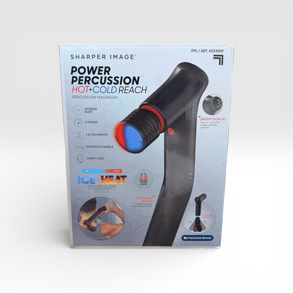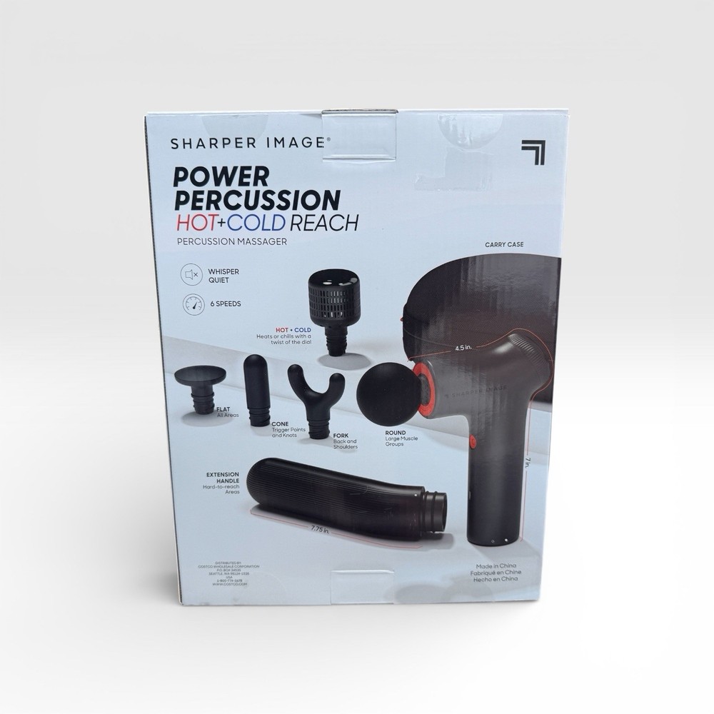 Sharper Image Power Percussion Massager Hot Cold Reach Open Box. Condition: New open box. Item appears unused and in excellent condition. Box shows light wear from handling/storage (see photos). Description: Sharper Image Power Percussion Massager – Hot + Cold Reach Features: • Hot and cold therapy (ice + heat) • 6 speed settings • Whisper quiet operation • LED display with dial controls • Extension handle for hard-to-reach areas Includes: • Percussion massager • Extension handle • 5 attachment heads • Carrying case All components are included. Open box condition due to packaging being opened.