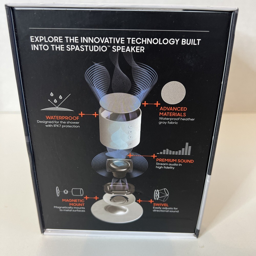 The Sharper Image Spastudio Shower Speaker is a wireless Bluetooth speaker designed for use in the shower. It features a waterproof design and a convenient magnetic mount for easy installation in the shower area. The speaker has a rechargeable battery with a USB-C port for charging and offers a crisp and clear audio experience. With its sleek white color and modern design, the Spastudio Speaker is a versatile and practical audio accessory for those who enjoy listening to music or podcasts while showering.