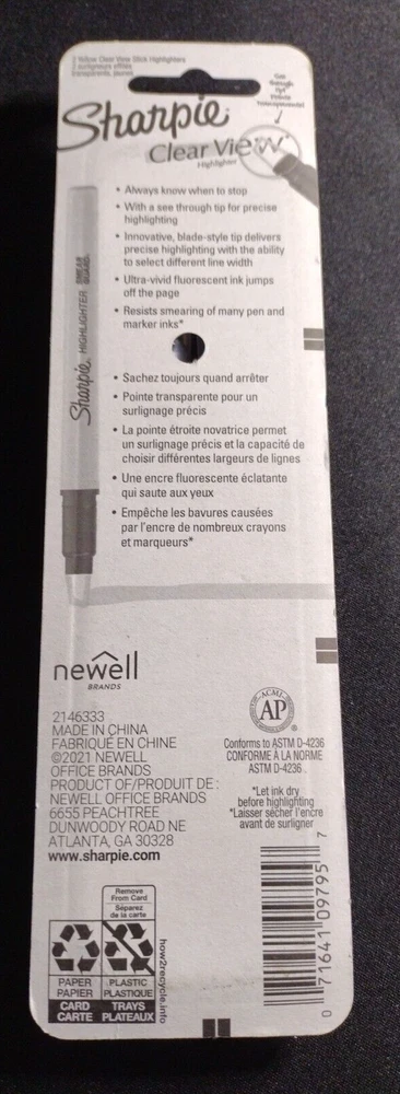 Sharpie Clear View Highlighter Stick Yellow Smear Guard ink Bright 2 Pack New Free USPS Ground Advantage Shipping