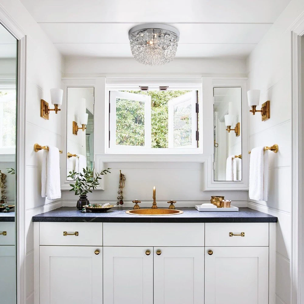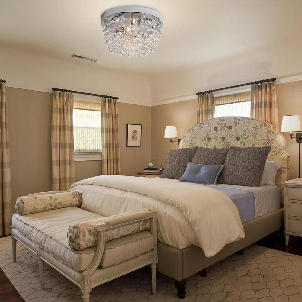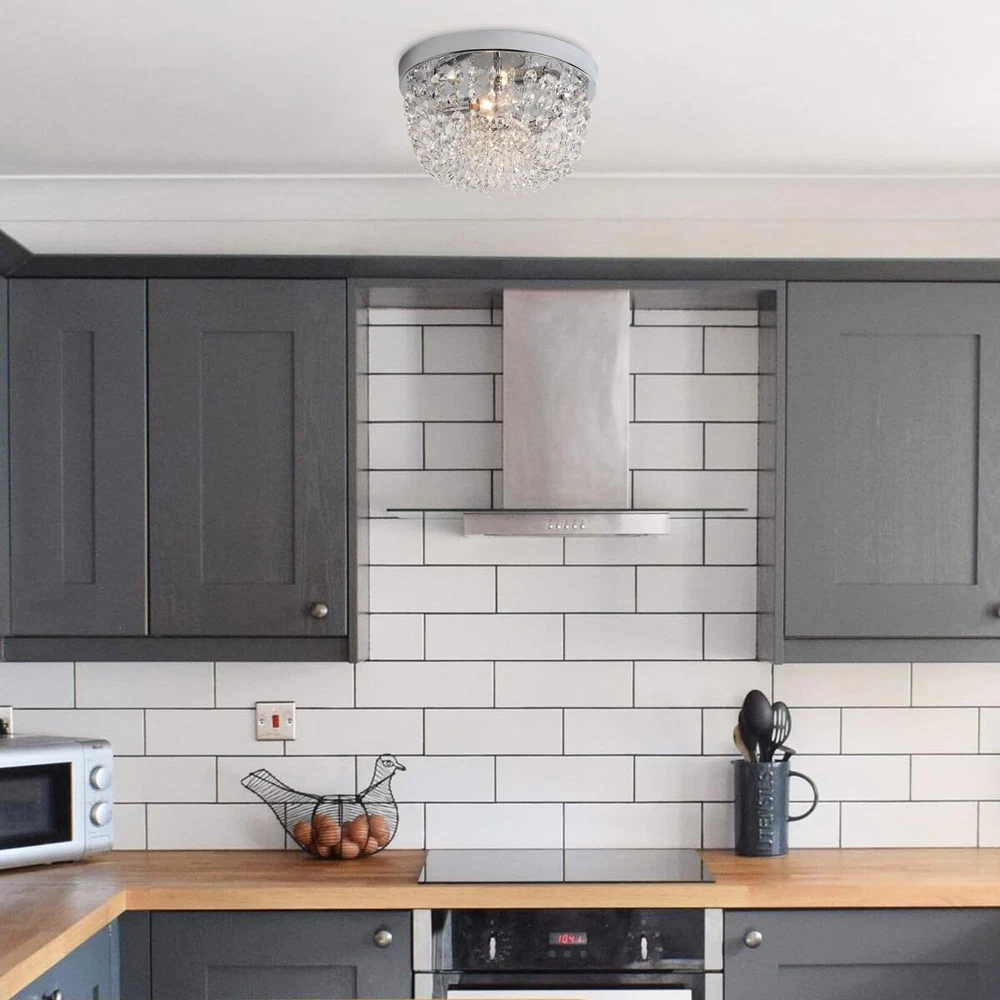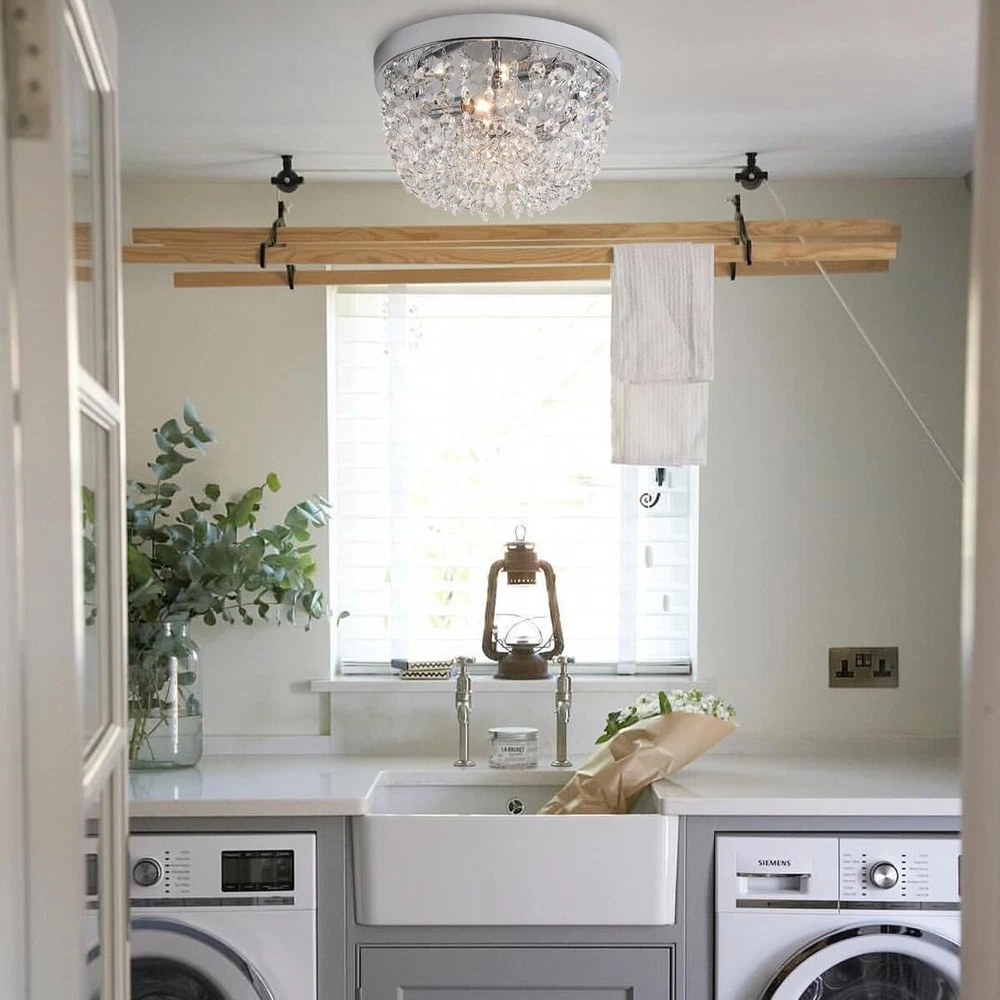 Sheenkarion Small Crystal Chandelier Flush Mount Ceiling Light,2 Lights Modern Mini Closet Chandelier,Elegant Chrome Ceiling Lighting Fixture for Bedroom Hallway Kitchen Laundry Entry,D9.8 Elegant Design:The flush mount crystal chandelier features a chrome finished sturdy steel frame and gorgeous glass crystals.The small chandelier creates a wonderful light through the exquisite crystal shade,adding much glam and personality to your space. Bulb Requirement:The crystal ceiling light uses 2 x E12 max 60 watt bulbs and gives off amazing light,compatible with LED,CEL,incandescent bulbs. It's dimmable if equipped with a dimmer switch and LED bulbs(Not Included Dimmer Switch and Bulb).You can choose different style bulbs and color temperatures to create different atmospheres. Wide Applications:The crystal light fixture is ideal for home with low or mid-height ceiling.It's a great choice for small bedroom,small living room,hallway,entryway,bedroom,closet,foyer,kitchen,girls room,dining room,etc. Perfect Size:9.8 inch diameter,5.4 inch height. Please pay attention to the size of item before purchasing. Service Satisfaction:Friendly customer service.Any problem with our ceiling lamp,please let us know,we will do our best to help you in less than 24 hours. Shipping We offer FREE shipping on all orders! We ship within Three business days of payment, usually sooner. We use a selection of shipping services such as UPS, FedEx, USPS etc. We only ship to the lower 48 states, no APO/FPO addresses or PO Boxes allowed. Local pickups and combined shipping options are not provided at this time. Return You can return a product for up to 30 days from the date you purchased it. Any product you return must be in the same condition you received it and in the original packaging. Please keep the receipt. Payment We accept payment by any of the following methods: PayPal Please pay as soon as possible after winning an auction, as that will allow us to post your item to you sooner! Feedback Customer satisfaction is very important to us. If you have any problem with your order, please contact us and we will do our best to make you satisfied. Contact Us If you have any queries, please contact us via ebay. We usually respond within 24 hours on weekdays. Please visit our eBay store to check out other items for sale! Thank you for shopping at our store.