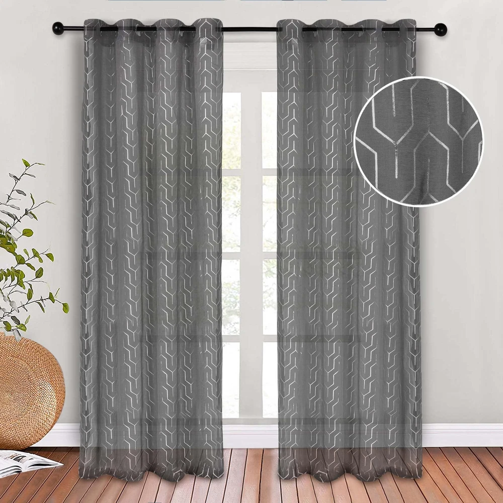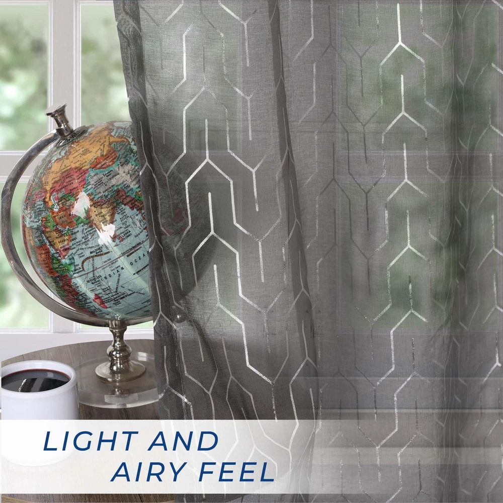 Update the look of your windows with the Cormac Printed Sheer Curtain Set. This enchanting panel pair is crafted with quality polyester making them durable and stylish. The opulent jacquard weave floral medallions sprinkled throughout these panels have a subtle sheen, adding texture and luxury to your windows while the rod pockets or stainless grommet header (depending on size) offer an easy installation. The alluring design and lasting construction mean you'll enjoy these curtains for years. QUALITY MATERIAL: Crafted from high-quality 100% Polyester; these curtains are soft to the touch and a great addition to transform any room, this curtain set is available an assortment of sizes to serve any sized window or space; includes 2 curtain panels EFFORTLESSLY CONVENIENT: Sheer curtains provide privacy while still allowing the sun to peek into your space; elegantly decorated your home without depriving it of natural sunlight; our designs match a variety of styles and make great gifts VERSATILE HEADER: Drape these curtains with utmost style and convenience; Depending on size, curtains feature different headers; 26" width curtains feature a rod pocket header and 42" and 52" width curtains feature a stainless steel grommet header MANY OPTIONS: Available in a variety of sizes and gorgeous colors: Grey, Ivory; impress your guests with these elegant curtains that effortlessly ties together any Modern, Eclectic, or Transitional styled home decor EASY CARE: Machine washable. Wash cold, gentle cycle, tumble dry low, do not bleach, warm iron when needed; always care instructions as listed for long-lasting products