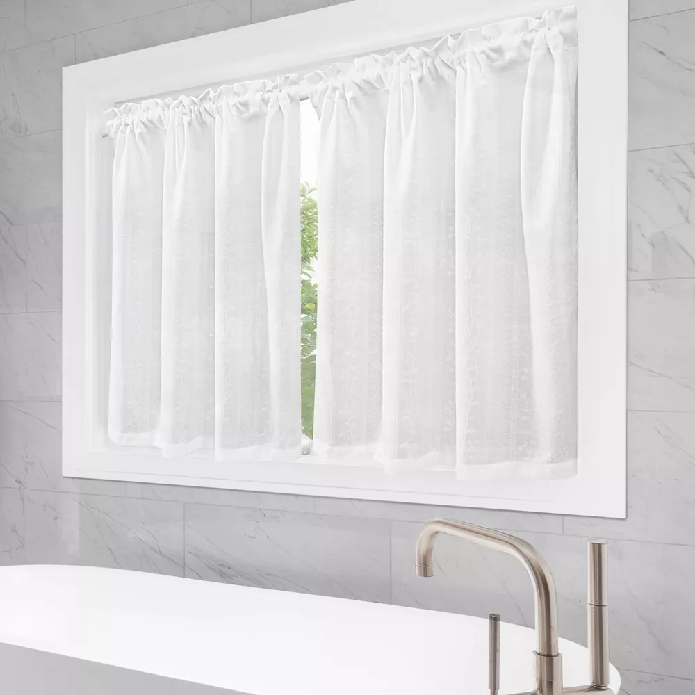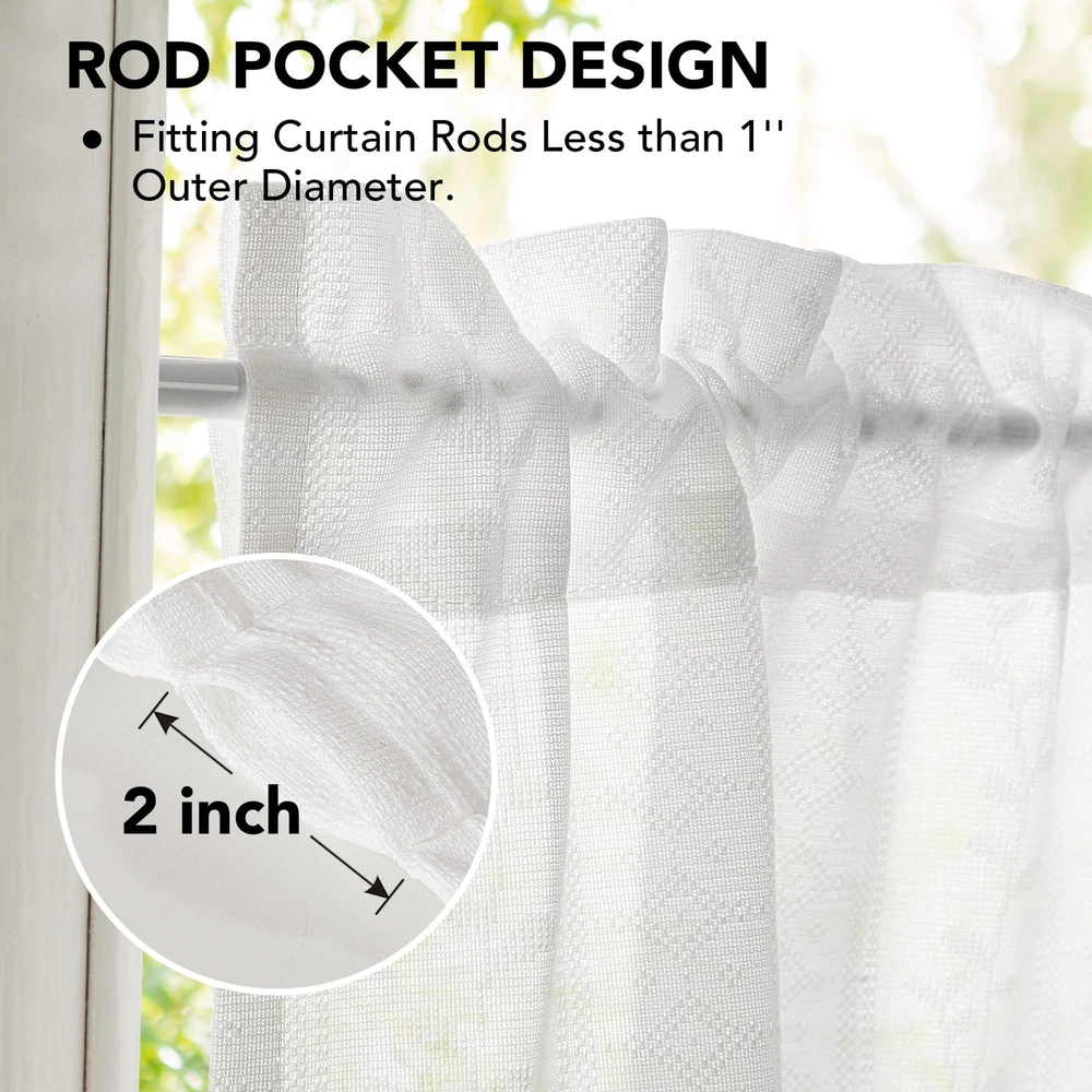 Product Info.: sheer curtains 2 panels set. Dual rod pocket design - Have 2" rod pocket slot, top with 1" header. Recommend use curtain rods with 0.5" OD. Elegant Look: floral kitchen curtains sets for windows. Boho curtains feature a smooth and elegant fabric with a silky touch and a beautiful drape that bring charm and modernity to your interior. Protect Your Privacy: semi sheer tiers curtains achieve light filtering but also protect your privacy from passers-by. Wide Application: kitchen curtains 24 inch length sets are ideal for bathroom, cafe, restaurant,front door, patio door, entrance door curtain, doorways, RVs, nursery, basement, room, laundry room, cupboard, bedroom window, living room ,small half window, valances and sliding curtains under cabinet. Save Your Effort: Recommend hand wash and ironed at low temperature. Dry cleanable. Not tumble dry; not bleach.