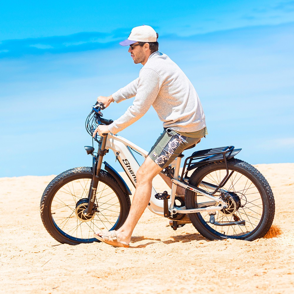 This e-bike is a blast to ride! The 26" fat tires give it a super stable, smooth feel on any terrain, and the dual suspension makes bumps disappear. The 500W motor has plenty of power for hills, while the Shimano 7-speed gears let you adjust easily. I love the comfortable grip levers and responsive brakes—plus, shipping was fast with free US delivery. Great value for the quality!