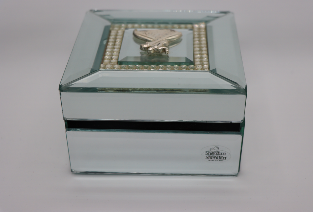 Sheridan jewelry box, delicate mirror glass decorative box with dancing figures It is used but in good condition. There is a sticker residue on one side, so it is discounted for this reason. It should come off with a little cleaning. Description Discover elegance with this exquisite Sheridan jewelry box, featuring delicate mirror glass panels adorned with intricate dancing figure designs. Perfect for storing your most cherished accessories, this decorative box combines timeless beauty with functionality. The reflective glass creates a luxurious feel, while the detailed artwork of dancing figures adds a touch of grace and artistry. Whether used as a keepsake box or a statement decor piece, this jewelry box embodies sophistication and charm, making it an ideal gift or addition to any vanity or dresser. Keywords Sheridan jewelry box mirror glass jewelry box decorative jewelry box dancing figures jewelry box elegant jewelry box delicate mirror box decorative storage box keepsake box glass decor box luxury jewelry box sophisticated jewelry box reflective glass box artistic jewelry box timeless jewelry box vanity box graceful jewelry box statement decor jewelry box mirrored accessory box intricate design jewelry box decorative storage elegant storage box graceful decor box gift jewelry box stylish jewelry box artistic storage box collectible jewelry box classic jewelry box