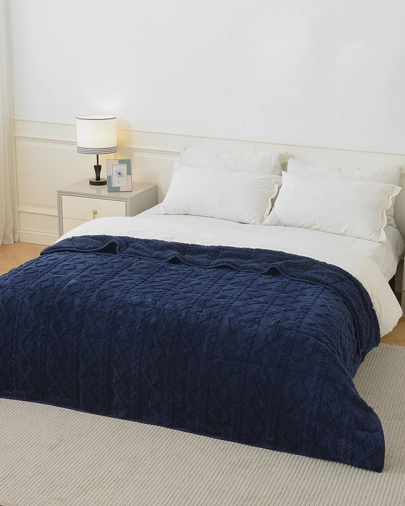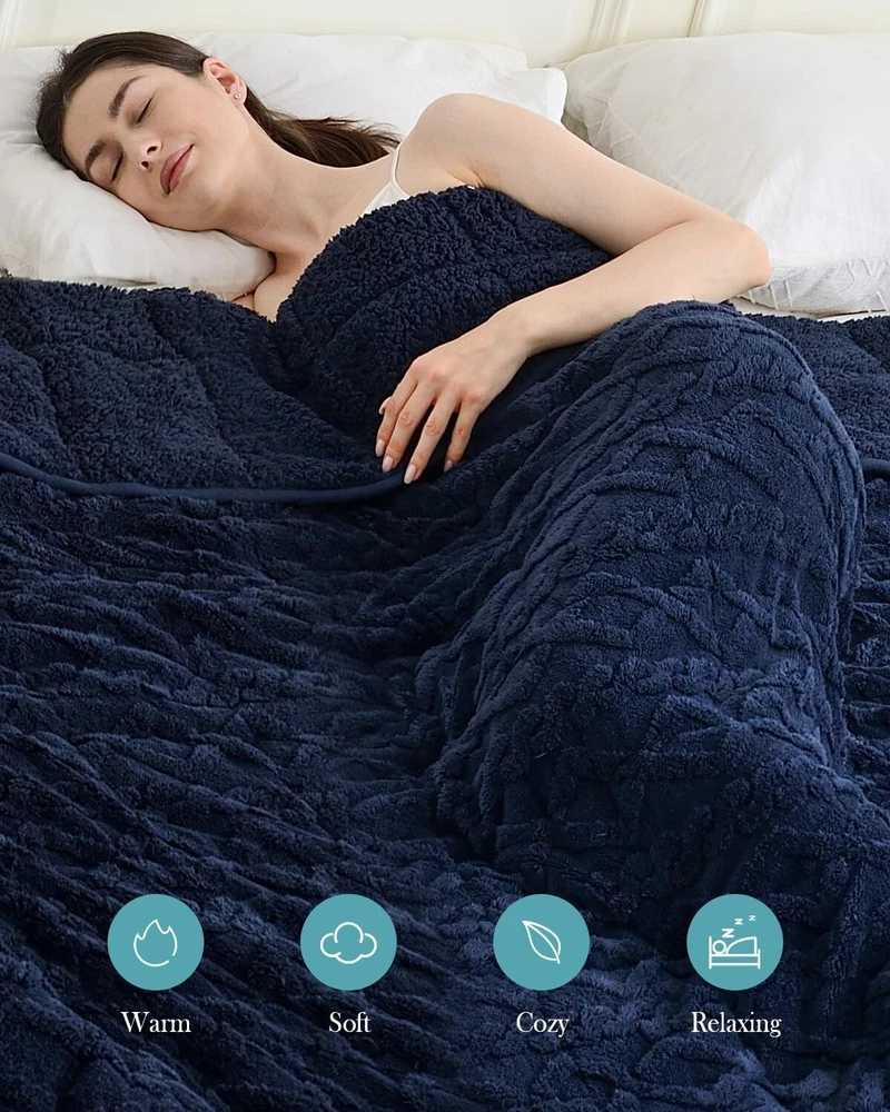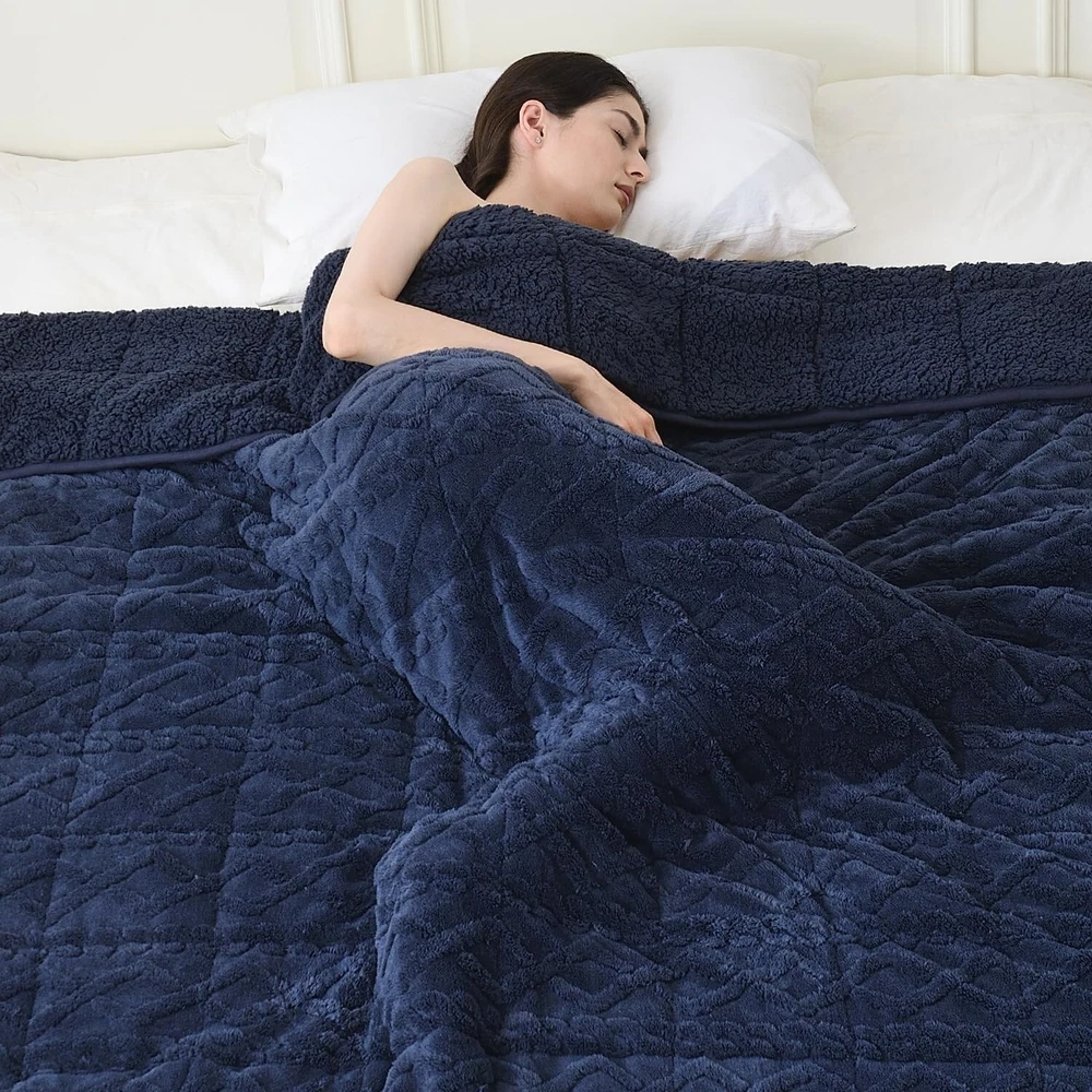 This weighted blanket is a game-changer for relaxation and sleep! The double-sided Sherpa is unbelievably soft, wrapping you in cozy comfort, while the even 20lb weight provides gentle, calming pressure. Perfect for unwinding at home or camping trips—stays in place without feeling restrictive. The cable-knit design looks stylish too. Worth every penny for deeper rest and warmth!