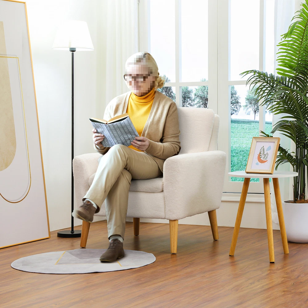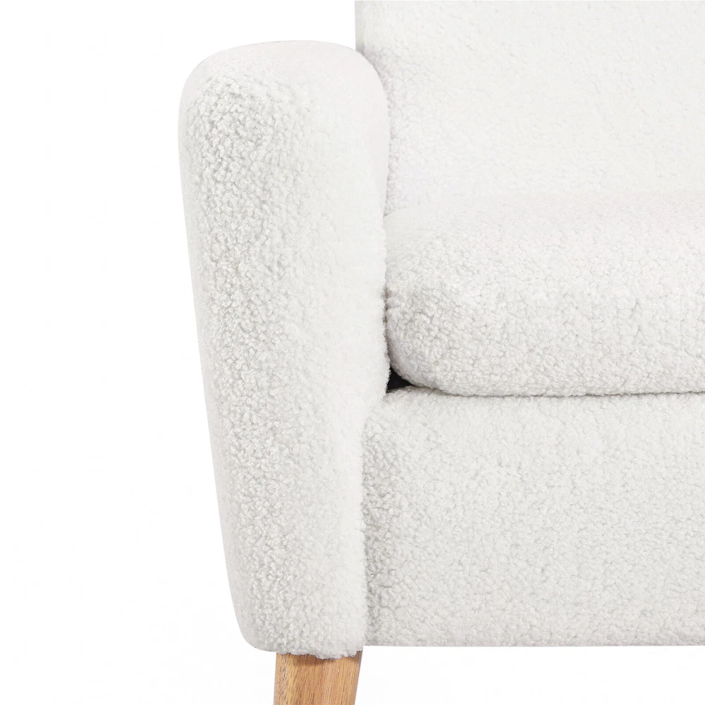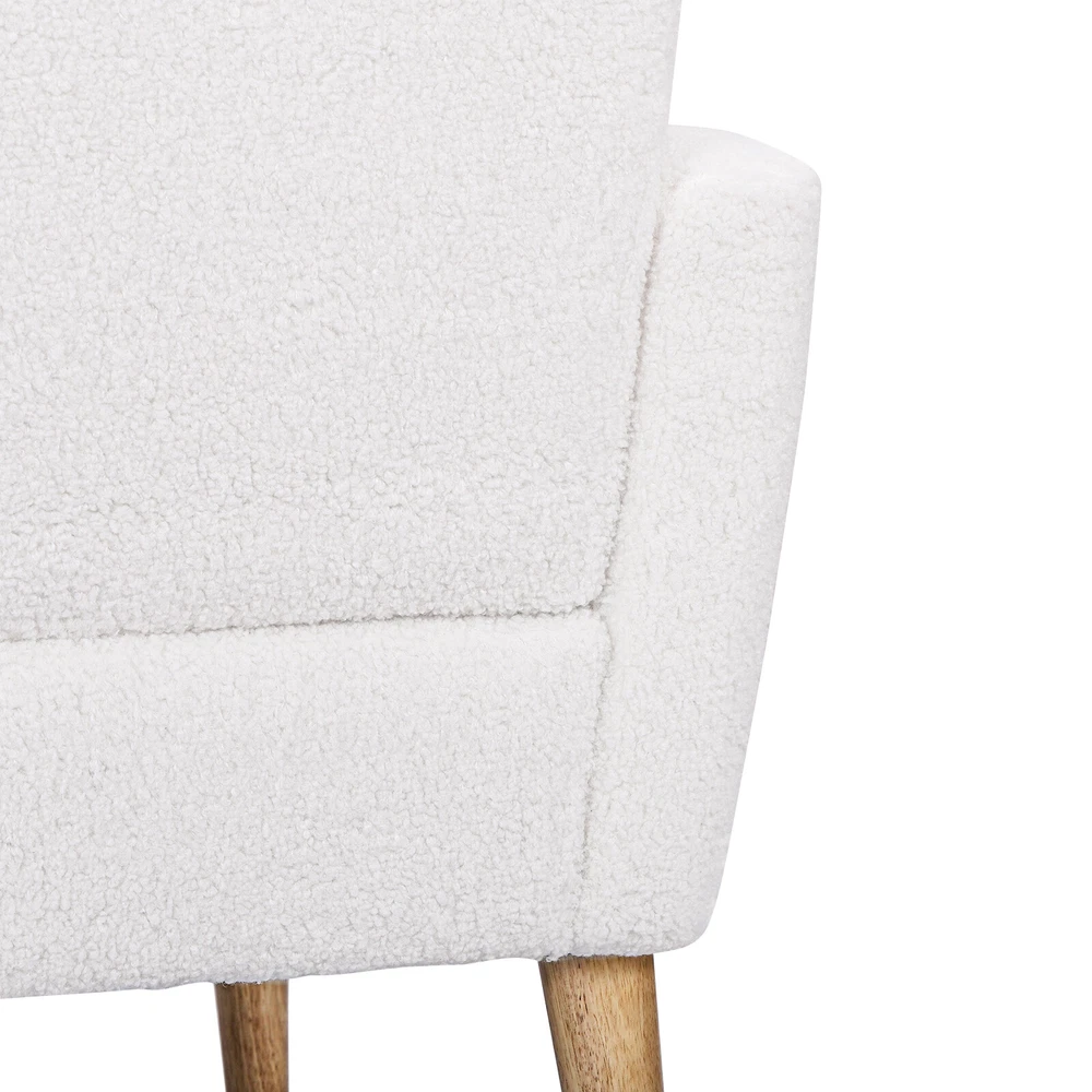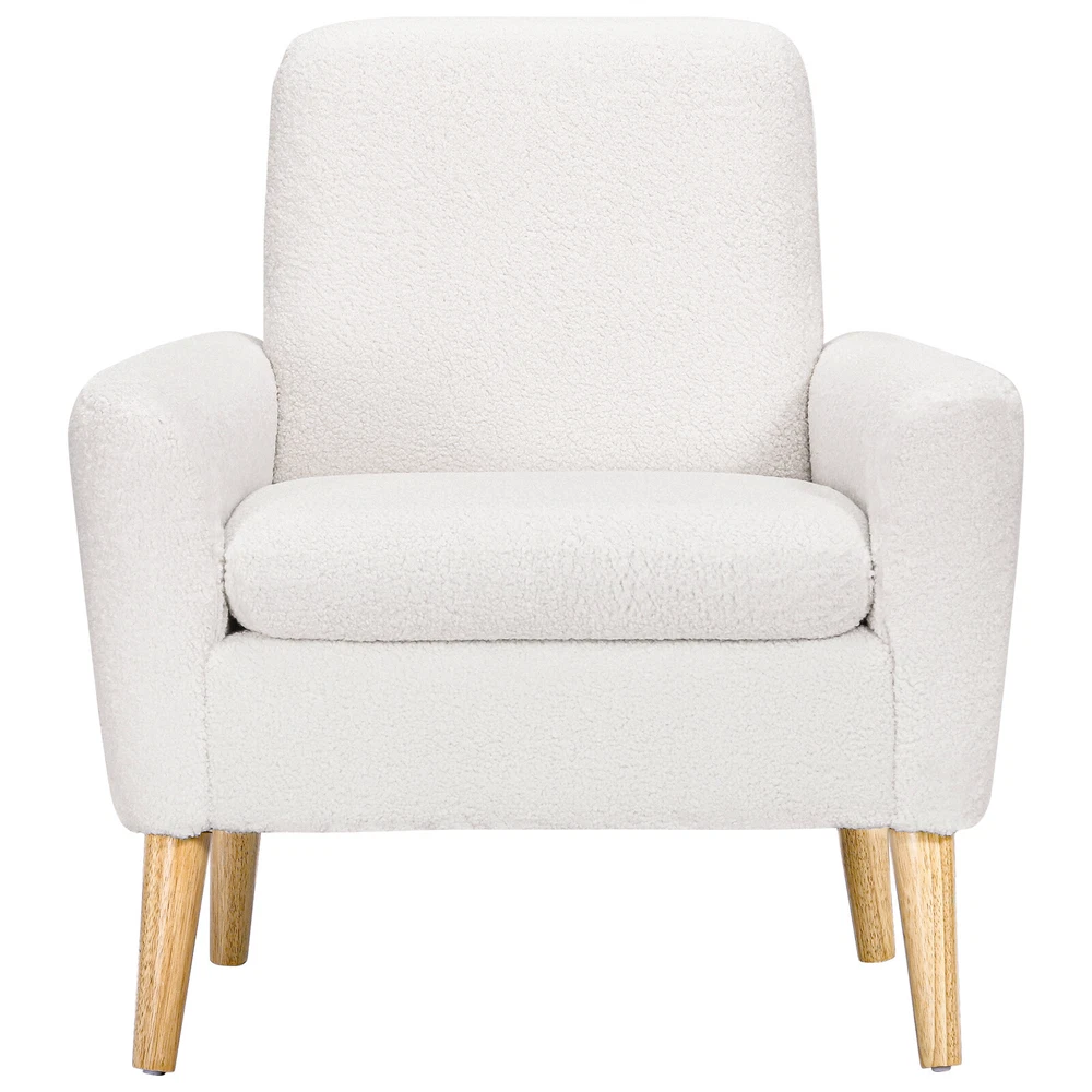 Sherpa Accent Chair White Teddy Fabric Upholstable Comfy Arm Chair for Bedroom Features: Minimalist Elegant Style Armchair: match perfectly with most decor theme is a great addition sitting chair to your living room, bedroom, apartment, dorm room Office. Ergonomically Designed: f urry sherpa fabric cover soft touch and skin-friendly comfortable padded seat cushion filled with soft sponge & S spring, ergonomic upholstered extra back cushion and curved armrest offer maximum seating comfort & cozy while sit on this comfortable chair. Durable & Long Last: solid wood frame construction and recovery soft sponge,Keep long time ride comfort and not easy to deformation, rubber solid wood legs with protective pads at the bottom, keep balance and protect the floor, can hold up to 350 pounds, so this funky living room chair will serve you for long time. Enjoy Leisure Time with This Decorative Chair: it's a great cozy chair for adults person size in some small space corner or clearance as occasional reception chair, in guest room, waiting room, club to get more comfort while reading, gaming, or in front the fireplace. East to Assemble: the single sofa chair come with partially assembled, is easy to assemble all the required accessories and installation guide are Included. can be quickly assembled. Specifications: Brand: Dazone Color: White Material: Wood Product Dimensions: 27.56"D x 26.77"W x 34.25"H Item Weight: 40 Pounds Frame Material: Rubberwood Special Feature: Durable Seat Material Type: Wood Recommended Uses For Product: Bedroom, Living Room, Reading Maximum Weight Recommendation: 440 Pounds Style: Modern Pattern: Solid Room Type: Office, Game Recreation Room, Bedroom, Living Room, Nursery Included Components: Cushion Arm Style: Rounded Seat Back Interior Height: 18.11 Inches Package includes: 1 x Arm Chair Sofa Contact us: Payment: Shipping: Warranty Return Contact us: We have always been trying to provide the best service and reliable products for every customer, however, accident may happen sometimes, please contact us to resolve any issue before leaving a negative feedback. Payment: 1. All payments must be prepaid before shipping. 2. We only accept payment via PayPal. Please kindly check if you can do the payment via PayPal before placing an order. Shipping: 1. Item will be shipped same business day if paid 4 pm EST 1 pm PDT (except weekends and holidays) and shipped from US. 2. Orders from the United States will all be shipped out via starnding shipping or economy shipping. The shipment usually takes 3-7 business days(Saturday and Sunday excluded), if you need the item urgently, please contact us for detail before purchase. Orders from overseas will be shipped via DHL Express, 3-5 business days. 3. Local pick up is not available. Warranty . The warranty shall not apply to the following circumstances: a) Damage caused by undue ware&tear, misuse, improper installation or operation, neglect, accidents. b) Damage caused by natural disaters, flood, fire, lightning or pollution. c) If item was opened, any parts removed or repaired by any unauthorized person. Return (1).We stand behind our items and offer 60 days warranty. All items are in brand new condition unless specified otherwise elsewhere in the description. (2).All returns - defective or otherwise - have to be preauthorized. Please contact us to get an authorization and returning address before sending the item back.If an item is returned because of an undeliverable shipping address, buyer agrees to pay the cost for re-shipment. (3).Please note that If the return/replacement is not a result of our mistake (not defective or wrong item), the buyer is responsible for return shipping, as well as a 20 percent restocking fee. (4).Replacement or refund will be made upon receipt of the returned item. If you do not want to wait for the replacement, you can just reorder one and then send the first one back for a refund.