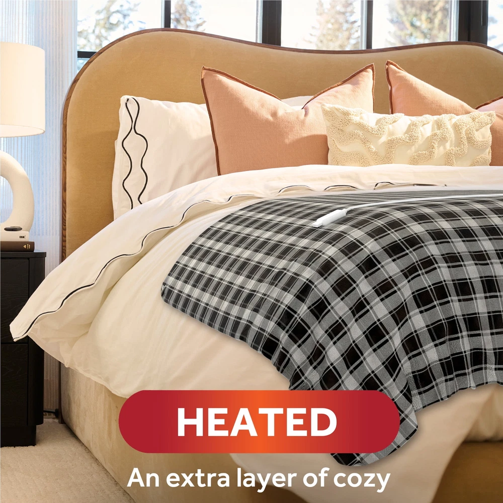 Sunbeam Electric Heated Throw Blanket – White & Black Buffalo Plaid, Microplush & Sherpa Stay warm and cozy with the Sunbeam White & Black Buffalo Plaid Heated Throw Blanket . Perfect for chilly nights, this luxurious throw combines style, comfort, and advanced heating technology to keep you snug all season long. ✨ Key Features: Effortless Warmth: Simple push-button controller for easy use. Customizable Comfort: 4 heat settings (Warm, Low, Medium, High) to find your perfect temperature. Safety First: Equipped with a 4-hour auto shut-off and overheat protection for peace of mind. Premium Materials: Ultra-soft microplush with reverse Sherpa/Faux Shearling fabric – a rich, cozy texture you’ll love. Perfect Size: Measures 50" x 60", ideal for snuggling on the couch, bed, or favorite chair. Easy Care: Machine washable and dryer safe for hassle-free maintenance. 🌟 Stylish and Functional: The elegant White & Black Buffalo Plaid pattern adds a touch of rustic charm to any space, making it both a practical and stylish accessory for your home. 💡 Trusted Quality: Sunbeam, an American brand with over 125 years of expertise, ensures all electric bedding products are ETL certified for quality and safety. 📏 Available Colors: Choose your favorite: White & Black Buffalo Plaid, Red & Black Buffalo Plaid, or Slate. Why settle for ordinary blankets? Upgrade to the Sunbeam Heated Throw and experience warmth, comfort, and style like never before.