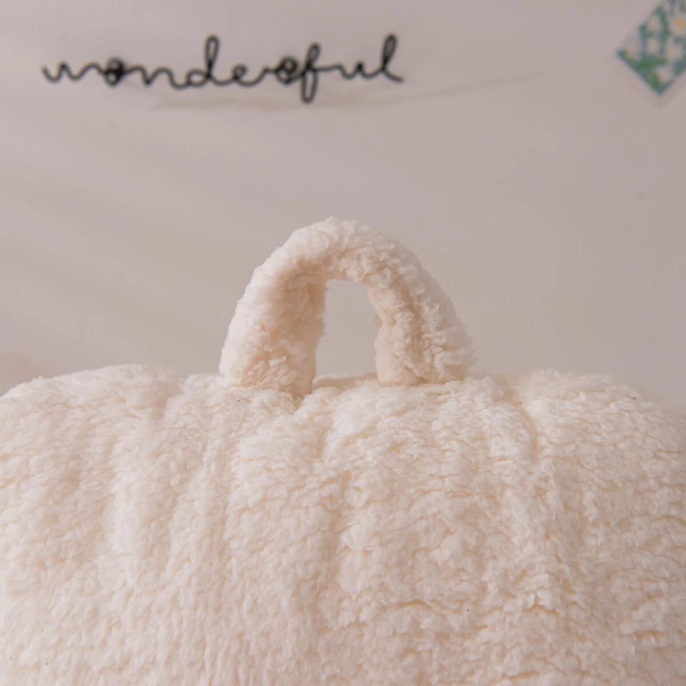 Care Instructions: Spot Clean, Do Not Bleach, Do Not Machine Wash Brand: Unbranded Fill Material: Polyester Material: Faux Fur, Sherpa, Sponge UPC: Does not apply Department: Unisex, Kids, Adults Special Feature: Washable GSM (Grams per Square Meter): Below 150 Room: Bedroom, Living Room, Playroom Personalize: No Closure Type: No Closure Type: Backrest Pillow Thread Count: 200 or Less Size: Small Features: Portable, Washable, Built-in Handle gtin13: Does not apply Style: Modern Color: Ivory Shape: Rectangular