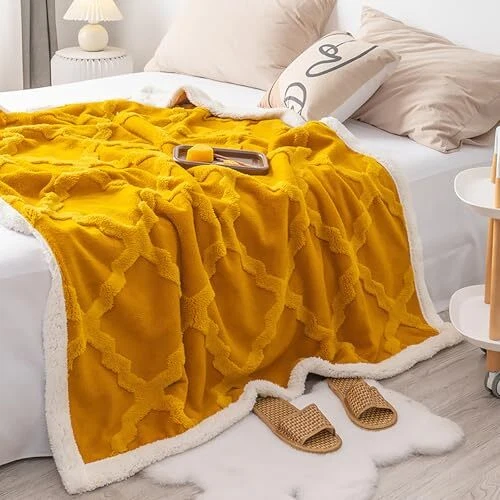 Return Policy Fast Delivery Trusted seller Sherpa Throw Blanket 50 × 60 inches, Classical Geometric Ultra Soft Sherpa Fleece Blanket for All Season, Warm Cozy Boho Blankets for Bed Couch Sofa Office Camping, Gold Product Description Unique Design:coral fleece Jacquard face and sherpa fleece reverse with a classical design offer you a softer touch. Snuggling on your couch or bed with our blankets to enjoy happy hours. Different colors meet your needs. Warm & Comfort: Manufactured from premium microfiber, this super soft microfiber velvet reversible to ultra-plush throw blanket, which offer relaxing warmth and coziness. Great Gift Idea: These beautiful blankets could be perfect present for any occasion - Birthday, Christmas, Women's Day, Mother's Day, Father's day, Thanksgiving Day, Housewarming. Remember, it's a gift that will hold up over the years. Blanket Size: 50'' x 60'', suitable for couch, sofa, bed, camping and home decoration. Please note that color may vary slightly from the picture, due to lighting conditions, camera calibration and your computer monitor settings. Machine Washable: Machine wash on gentle cycle with cold water,tumble dry at very low temperature Shipping Returns Payment Shipping Shipping is FREE to all addresses other than APO/PO boxes in the lower 48 states. All our stock ships from US-based warehouses. Shipped via USPS or UPS (depending on location and package weight) Unless stated otherwise, all orders will ship within 24-72 hours of your payment being processed. Check our feedback to see the great reviews of FAST shipping we offer. Returns Seller does not accept returns Payment We currently accept payment via eBay managed payments only. Once payment is cleared, we will dispatch your shipment within 1-3 business days. Please refer to the "Shipping" tab for more information regarding shipping speed to your destination.
