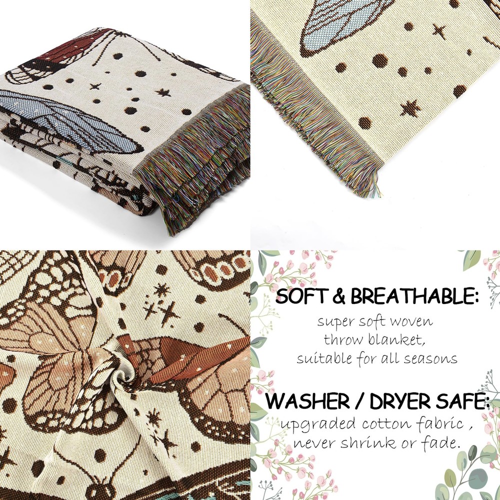 🌞 MATERIAL: Polyester cotton material, polyester 85% cotton 15% 🌞REVERSIBLE WOVEN NOT PRINTED: Won't peel or fade after wash; Upgraded cotton fabric ,never shrink or fade. 🌞 VERSATILE & STURDY: large enough for queen beds, perfect for naps 🌞 SOFT & BREATHABLE: super soft woven throw blanket, suitable for all seasons 🌞 CARE INSTRUCTIONS: Wash under 30 C/86°F, no bleaching, no iron.Laundry net bag is highly recommended for machine washing to avoid tangle. Do not use brushes to wash blankets when hand wash. It is recommended to sterilize properly in the sun, and try not to keep it in a cool place for a long time.Minimize the accumulation of sharp or rough objects around the blanket.Machine washable, Hand wash recommended.