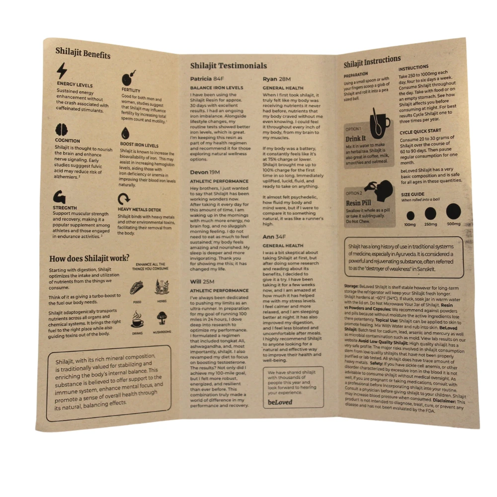 Experience the ancient benefits of BeLoved Health Himalayan Shilajit, a mineral that has been used for centuries to help with overall wellness. Our pure shilajit is packed with essential minerals and fulvic acid, making it a great supplement to support your daily health. Try our Apprentice Kit (5g jar), a convenient 2 week supply, and feel the difference. Includes: 2 Week Small Jar (5g) Short Hanging Spoon Online and Paper Instructions Key Features Pure Himalayan Shilajit: Sourced directly from the pristine Himalayan mountains, ensuring the highest quality and potency. Natural Energy Booster: Helps to enhance stamina, providing a natural energy boost for your daily activities. Rich in Minerals: Packed with over 85 essential minerals and fulvic acid to support overall wellness. Convenient 5g Jar: Perfect size for a 2-week supply, making it easy to incorporate into your daily routine. How to Use Dosage: Use a small pea-sized amount (about 0.25g) per day. Consumption: Dissolve in warm water, tea, or milk, and drink. Can also be taken directly for faster absorption (DO NOT CHEW). Frequency: For best results, use daily as part of your wellness regimen. Ingredients Fulvic Acid Humic Acid Potassium Magnesium Phosphorus Sodium Iron