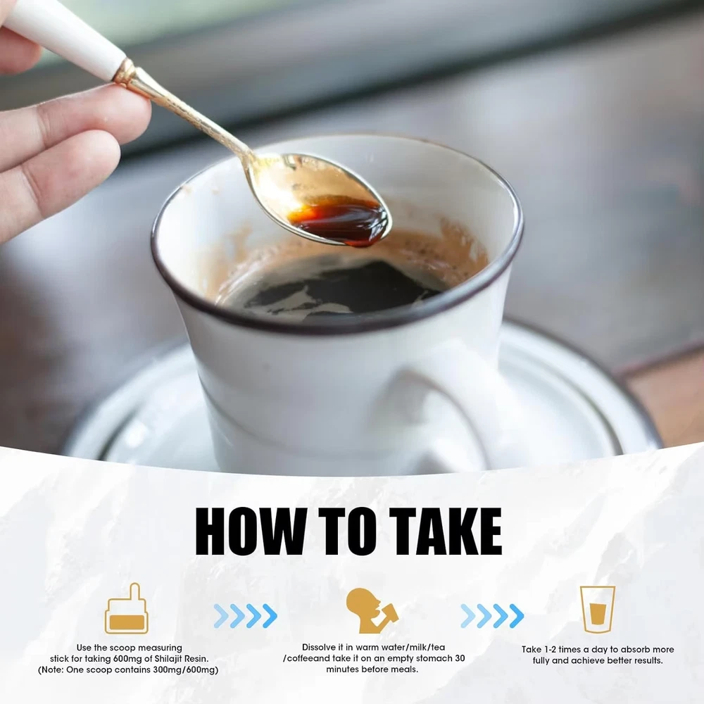 Pure organic shilajit resin freshly harvested from the Himalayan GilgitBaltistan Mountains at 18,001 ft altitude. This ancient ayurvedic traditions are derived from rare and gold-grade shilajit, loaded with essential minerals and fulvic acid, making it an excellent choice for you to live a balanced lifestyle Maximum 600 mg shilajit resin in each serving, with a true gold standard of purity and potency, you will get authentic organic shilajit resin at better quality. Say No to those low grade, low potency and small batch shilajit in fewer grams. Feeling run down? Enjoy a surge of overall feeling and strength with Sennasi shilajit resin. With golden level pure shiljiat resin and unlike an ordinary mineral supplement, the fulvic acid component of Shilajit improves mineral absorption, support your well-being like immune system, energy level, digestion and reduce fatigue - enjoy a better overall quality of life Get the power of shilajit! Sennasi shilajit resin is your unique 85+ trace minerals and fulvic acid powerful source, providing you with the essential minerals your body needs to stay energized. Simply dissolve a pea-size shilajit resin in warm water or add it to your favorite drink and you will take control of your overall wellness with shilajit