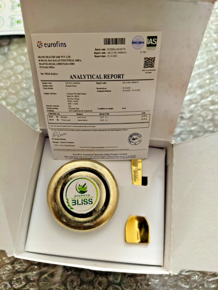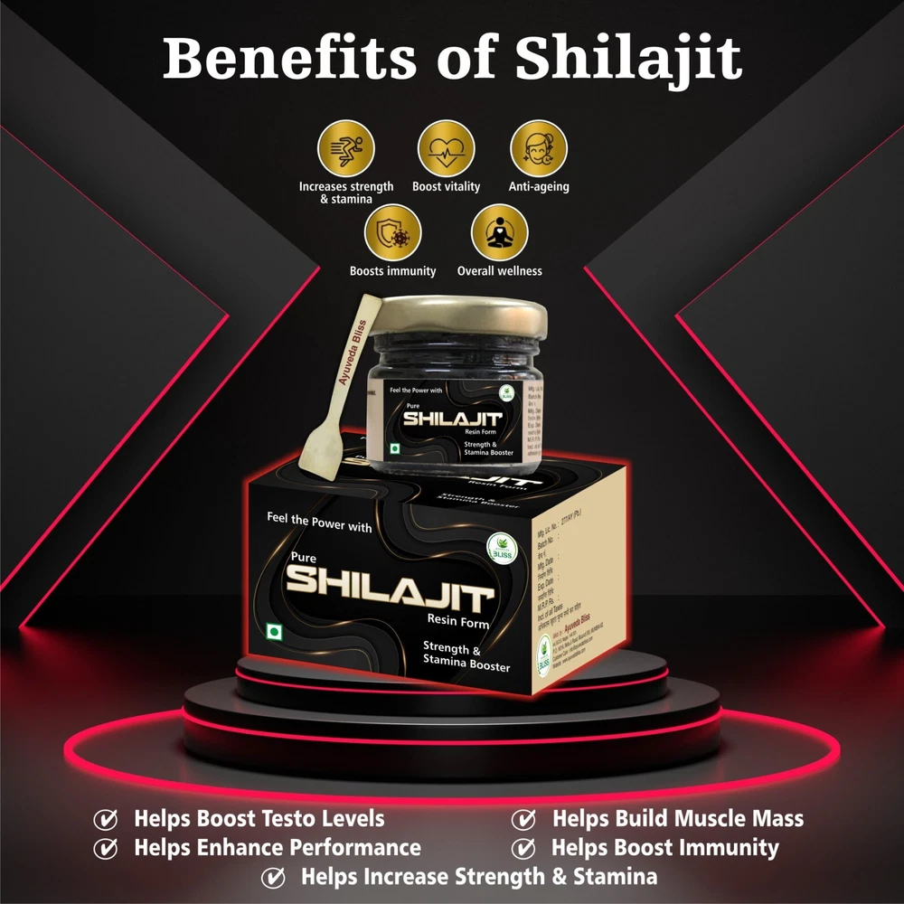 AYUVEDA BLISS SHILAJIT 15G PACK Original & Pure Shilajeet to Boost Performance, Power, Stamina, Strength | Lab Tested | Bliss Pack of 1 with Test Report in Each Pack Product Benefits Helps Boost Stamina & Strength Helps Provide Physical Power Helps Build Muscle Mass Helps Reduce Stress & Anxiety Shilajit Resin is the purest form of shilajit, which is formed in high altitude mountains. Ayuveda Bliss Shilajit is pure and natural shilajit sourced from pristine high altitudes of global mountain ranges. This Alkaline Shilajit is naturally rich in more than 85 essential nutrients including Magnesium and Urolithin A . Ayuveda Bliss Pure Shilajit is a natural strength & stamina enhancer with highest solubility and Fulvic Acid. Every batch is tested in labs and contains no heavy metals.